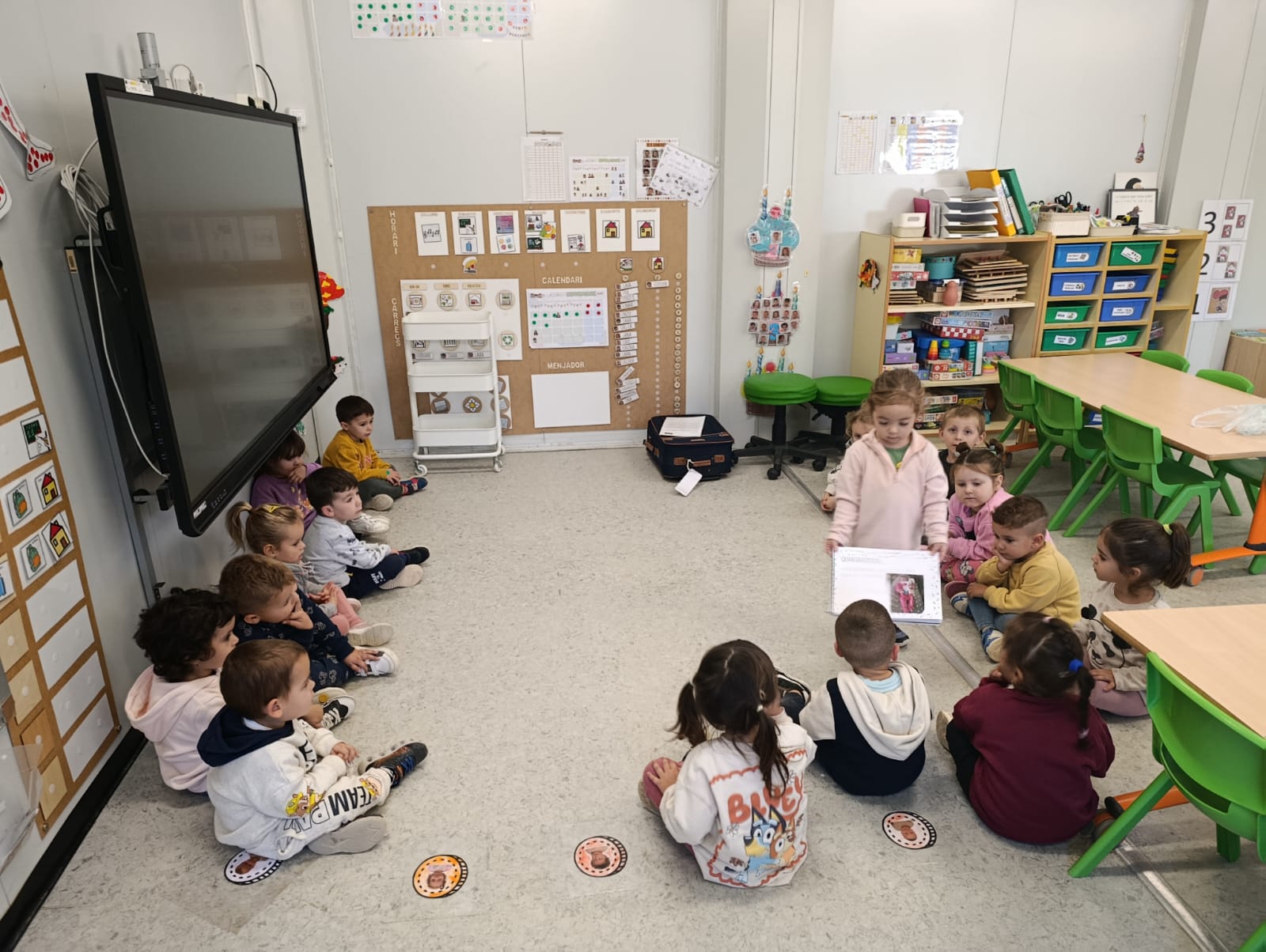 A I3, a partir d’un llibret i una maleta, els nens i nenes es donen a conèixer a la resta (que els fa feliços, que els fa sentir por, com eren de petits, etc.). A I4, han d’explicar un conte als seus companys/es. Per últim, a I5, expliquen una notícia significativa i propera, com si fossin reporters/es.
