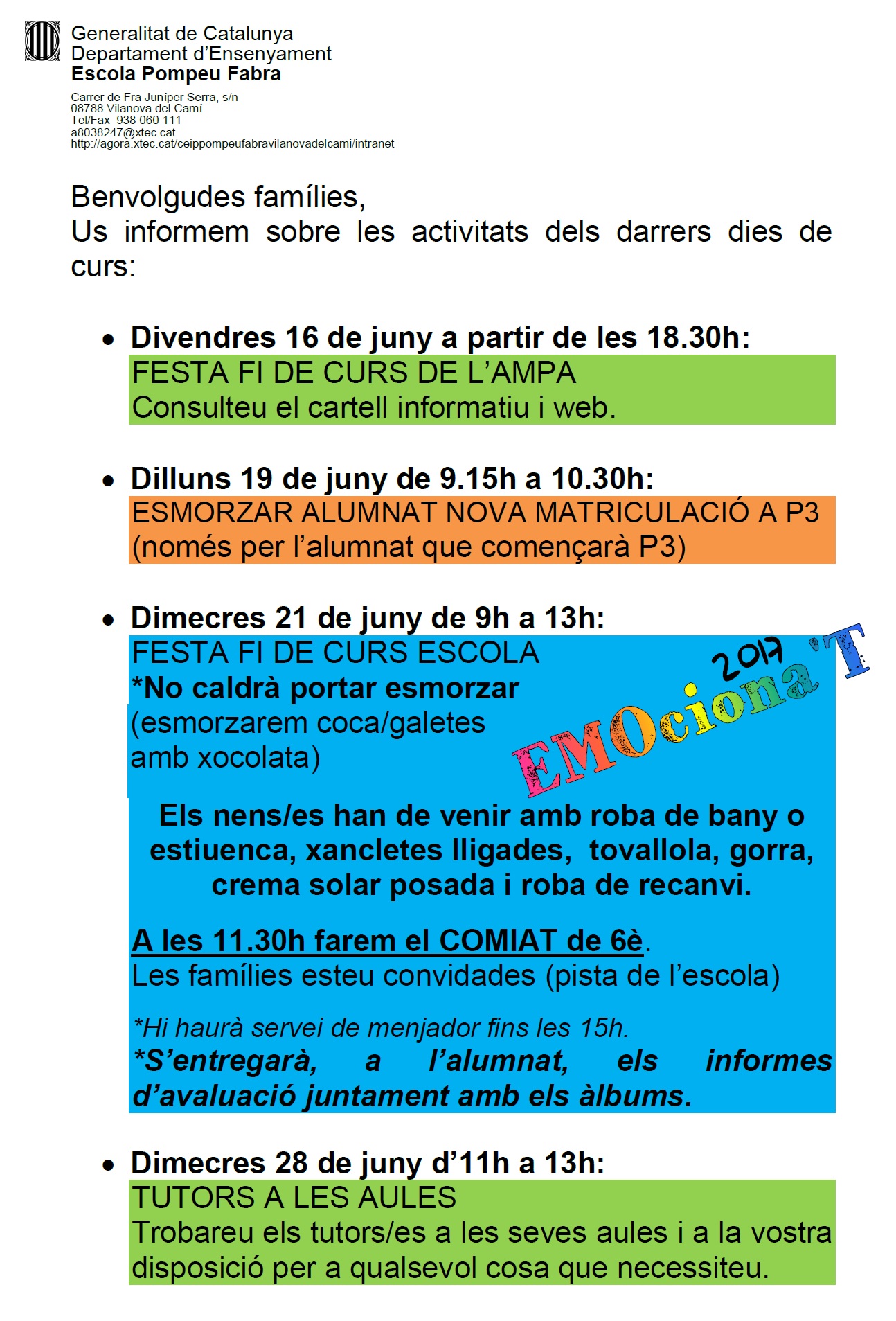 Activitats Fi de curs a l’escola! Feu un comentari / Per admin / 9 de juny de 2017 / General Infantil Portada Primària