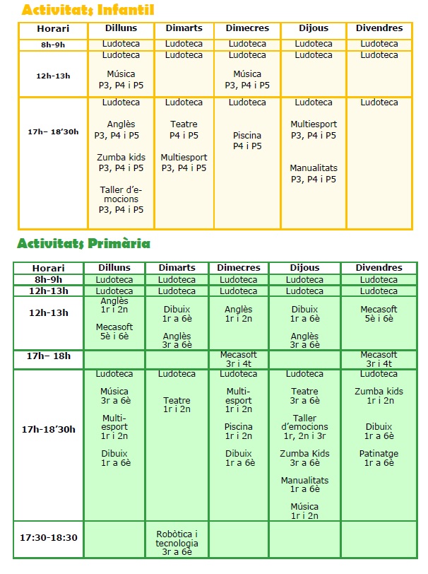 AMPA – Activitats extraescolars Feu un comentari / Per admin / 17 de juliol de 2017 / AMPA General Infantil Portada Primària