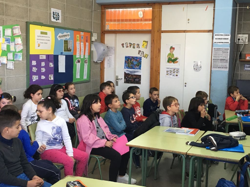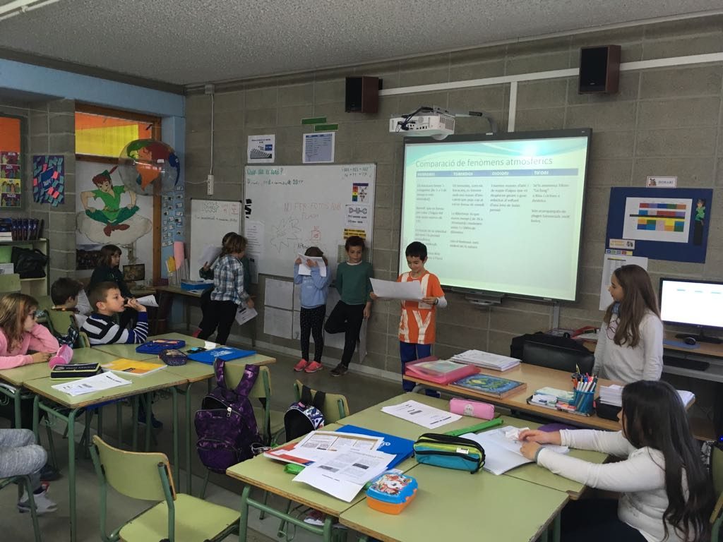 A les 3h de la tarda, ens vam trobar a la classe dels Peter Pan i ens vam intercanviar els nostres treballs sobre els minerals i els huracans.