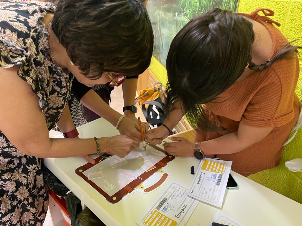 Rebuts per l’equip de comandament (Equip Directiu) com a exemplars pilot i hostesses, l’equip de mestres ha arribat al centre per compartir un matí de benvinguda i de retrobament. Amb el seu bitllet de vol, destí al NOU CURS ESCOLAR, han compartir els valors que omplien el seu equipatge i els han deixat plasmats, amb una dinàmica de cooperació, a les seves maletes d’equips.