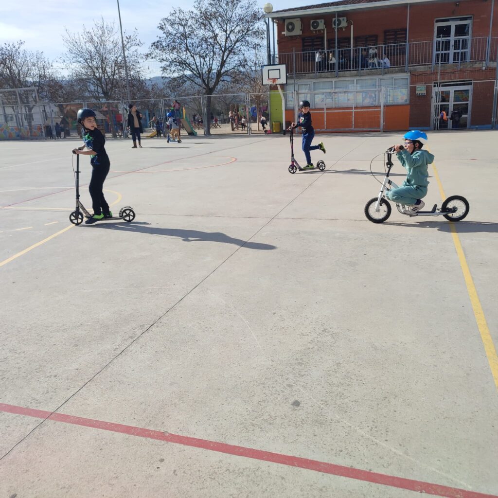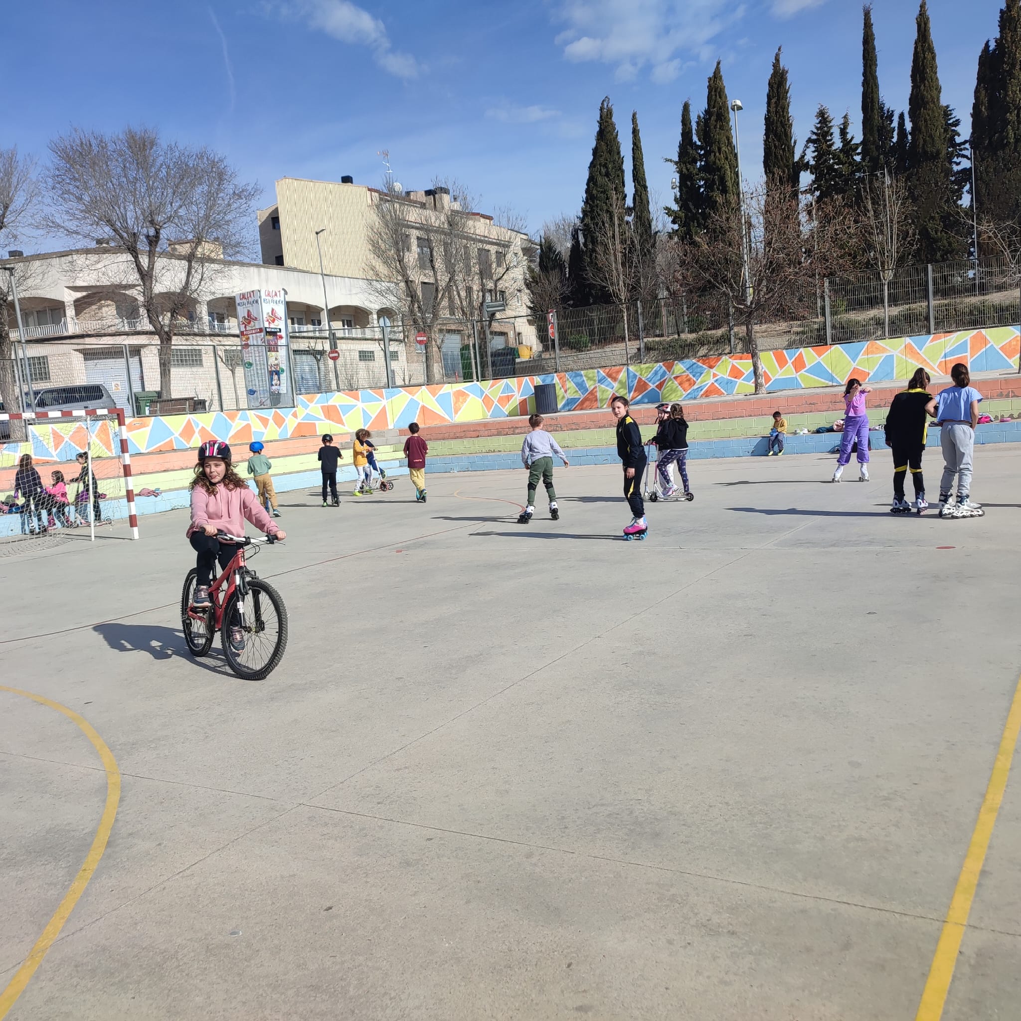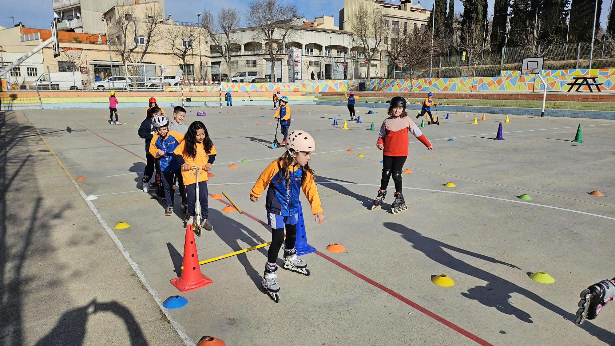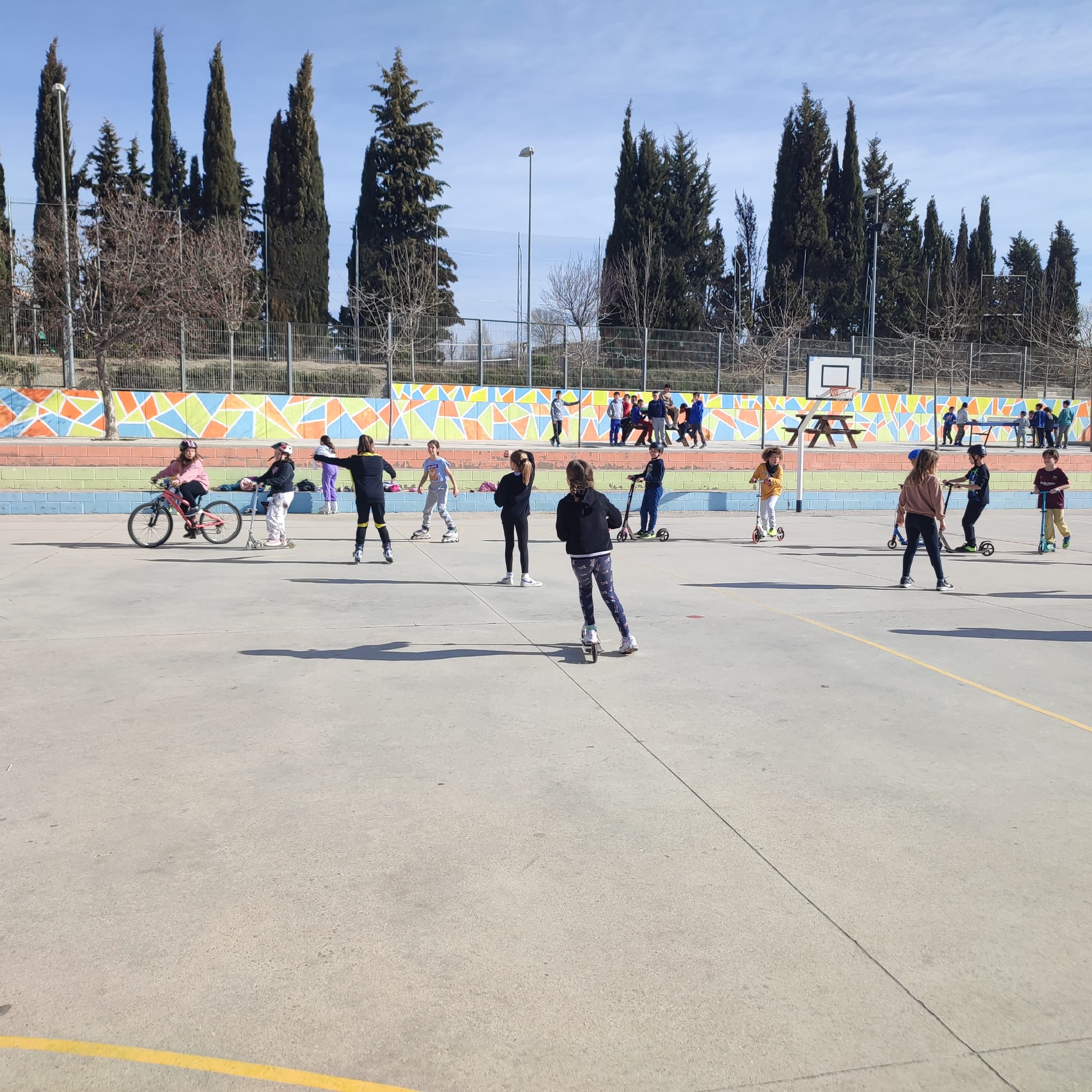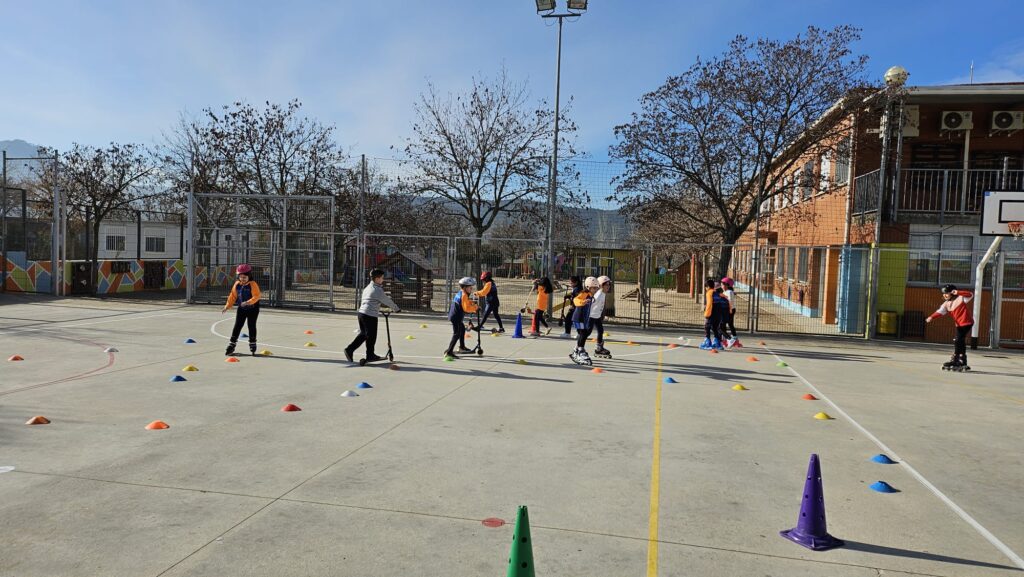 CICLE MITJÀ GAUDEIX DE PATINS I PATINETS AL PATI Feu un comentari / Per Notícies web / 26 de febrer de 2024 / "Astèrix" i "El màgic d'Oz" "Peter Pan" i "El llibre de la selva" General Portada Primària Gràcies al projecte “El pati: un espai educatiu” en aquest mes de febrer, l’alumnat de Cicle Mitjà ha pogut gaudir d’una estona per jugar amb patins i patinets a la pista poliesportiva del pati de l’escola. S’ho han passat d’allò més bé!!!