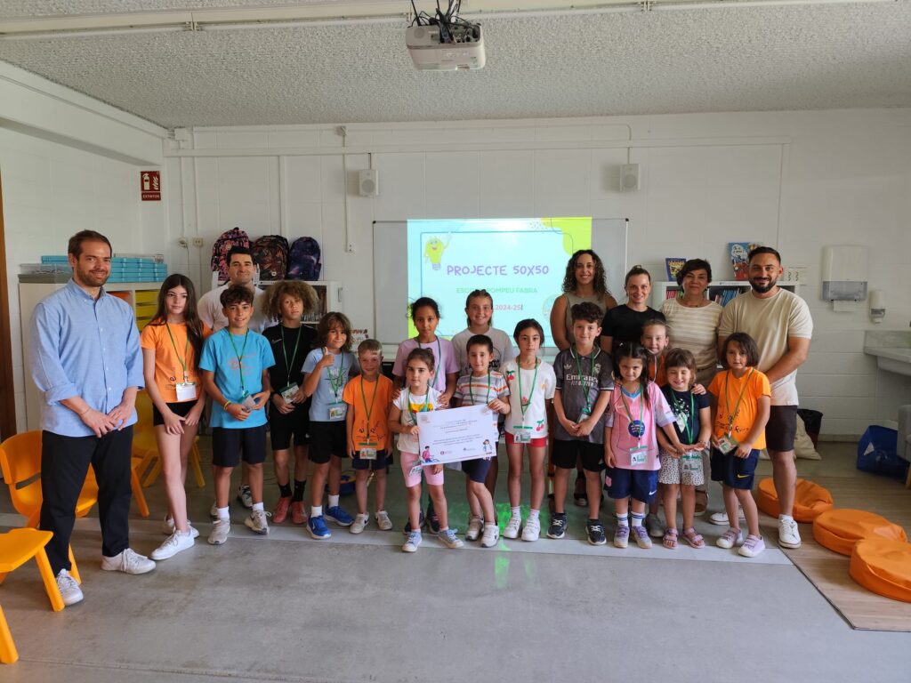 Aquest passat dimecres dia 11 de juny ha tingut lloc a la biblioteca de l’escola, l’acte de cloenda del projecte 50/50 per la conscienciació de l’estalvi energètic al centre. Hi han assistit tots els delegats/es verdes i diverses personalitats de l’ajuntament de Vilanova del Camí i de la Diputació així com de la direcció del centre i els mestres impulsors. Hem fet una presentació del projecte i explicat com l’hem dut a terme. També hem valorat el grau d’impacte amb unes boles de colors que ens ha costat una mica. Finalment des de la Diputació se’ns ha entregat un diploma com a reconeixement a la feina ben feta. Esperem que això serveixi perquè entre tots fem una escola més sostenible.