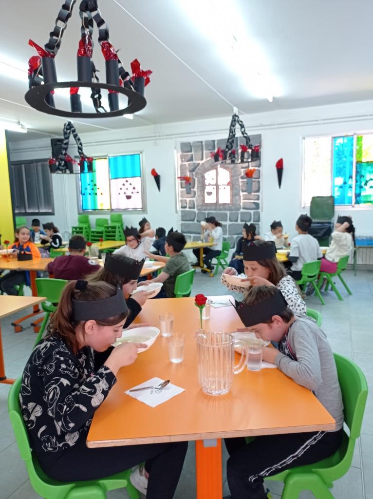 El darrer divendres, 23 d’abril, en motiu de la Diada de Sant Jordi, des del servei de menjador escolar es va dur a terme un dinar medieval.