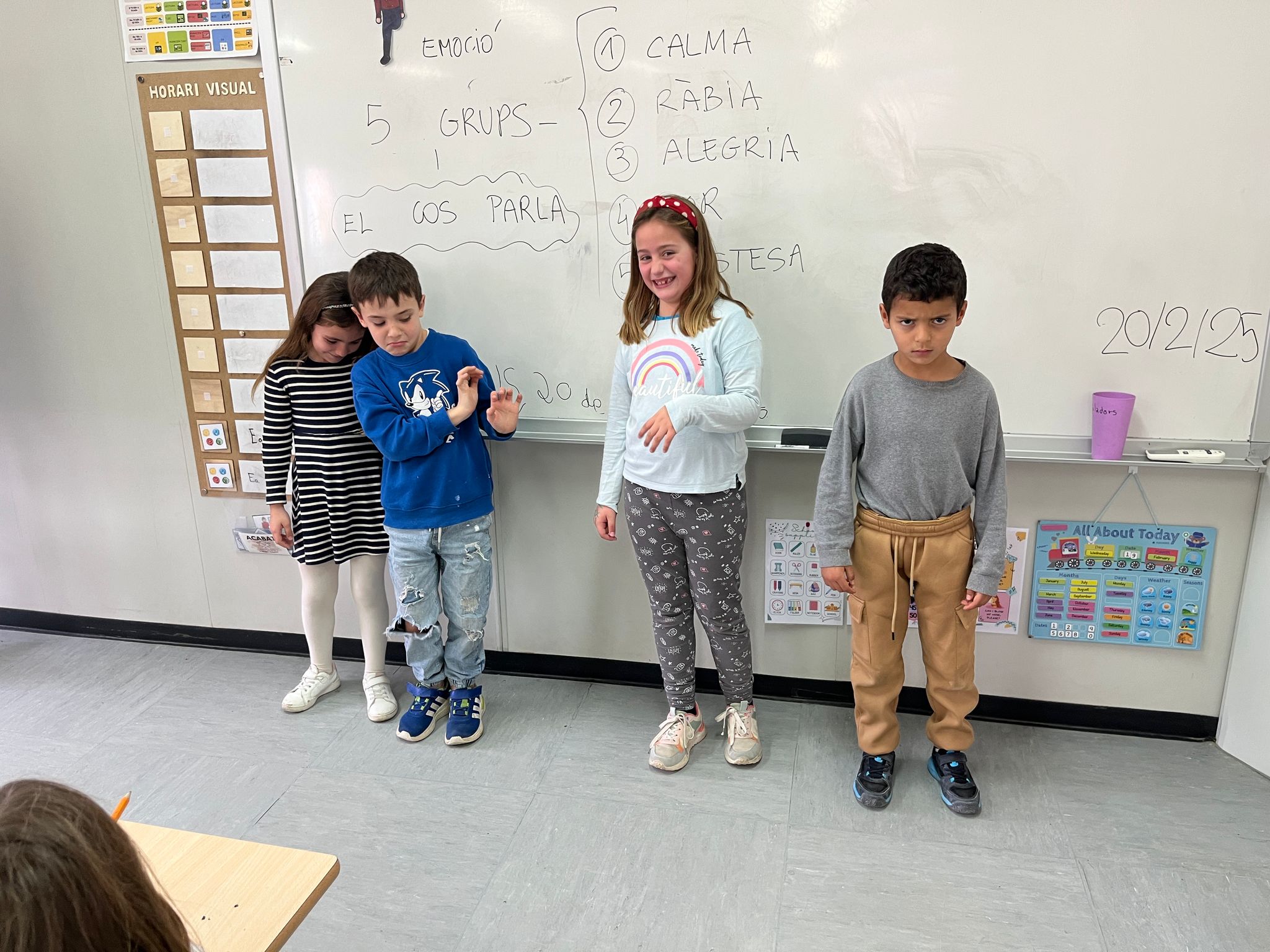 Primer, en grups, hem explorat les emocions a través del cos! Cada equip ha representat una emoció (alegria, tristesa, por, ràbia o calma) i la resta l’ha hagut d’endevinar.