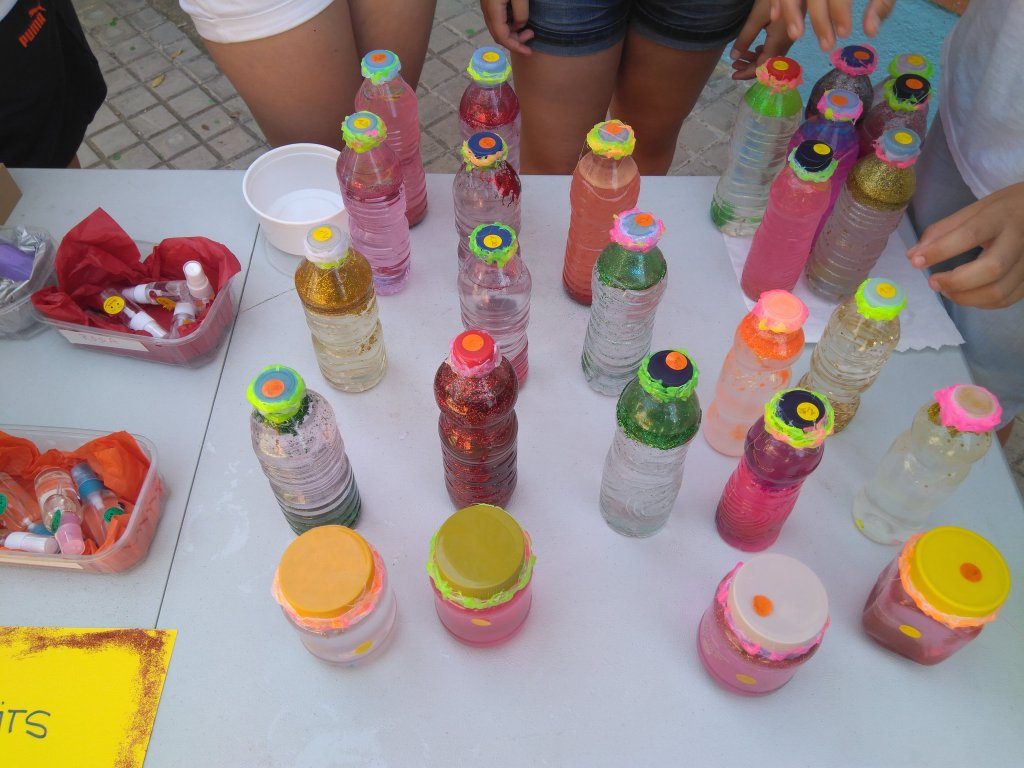 - POMPEU CALMA ha fet pots de la calma amb ampolles de plàstic, glicerina i elements flotants.