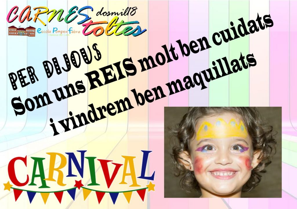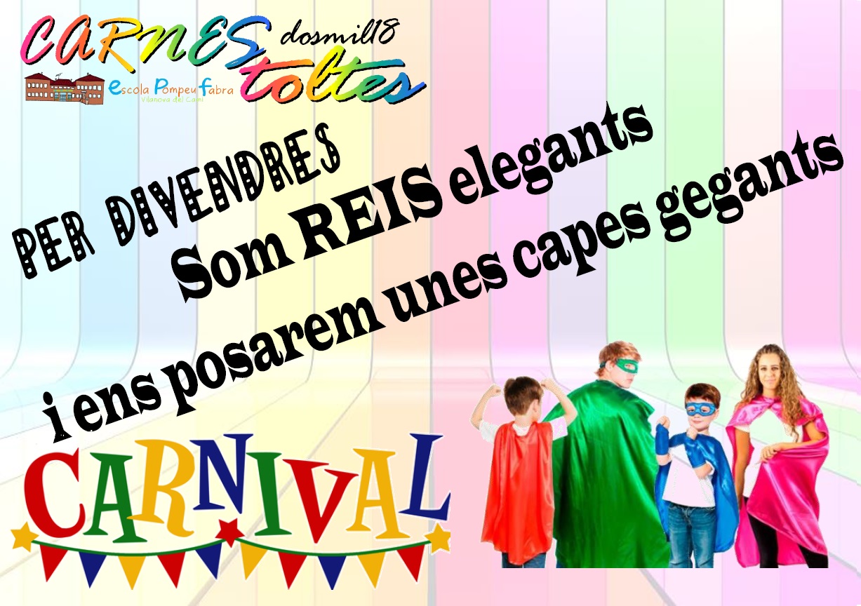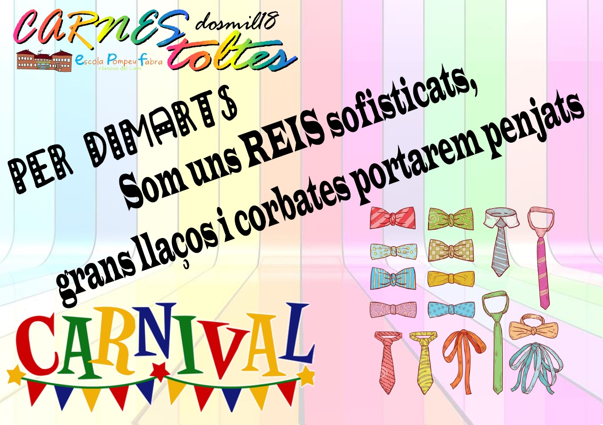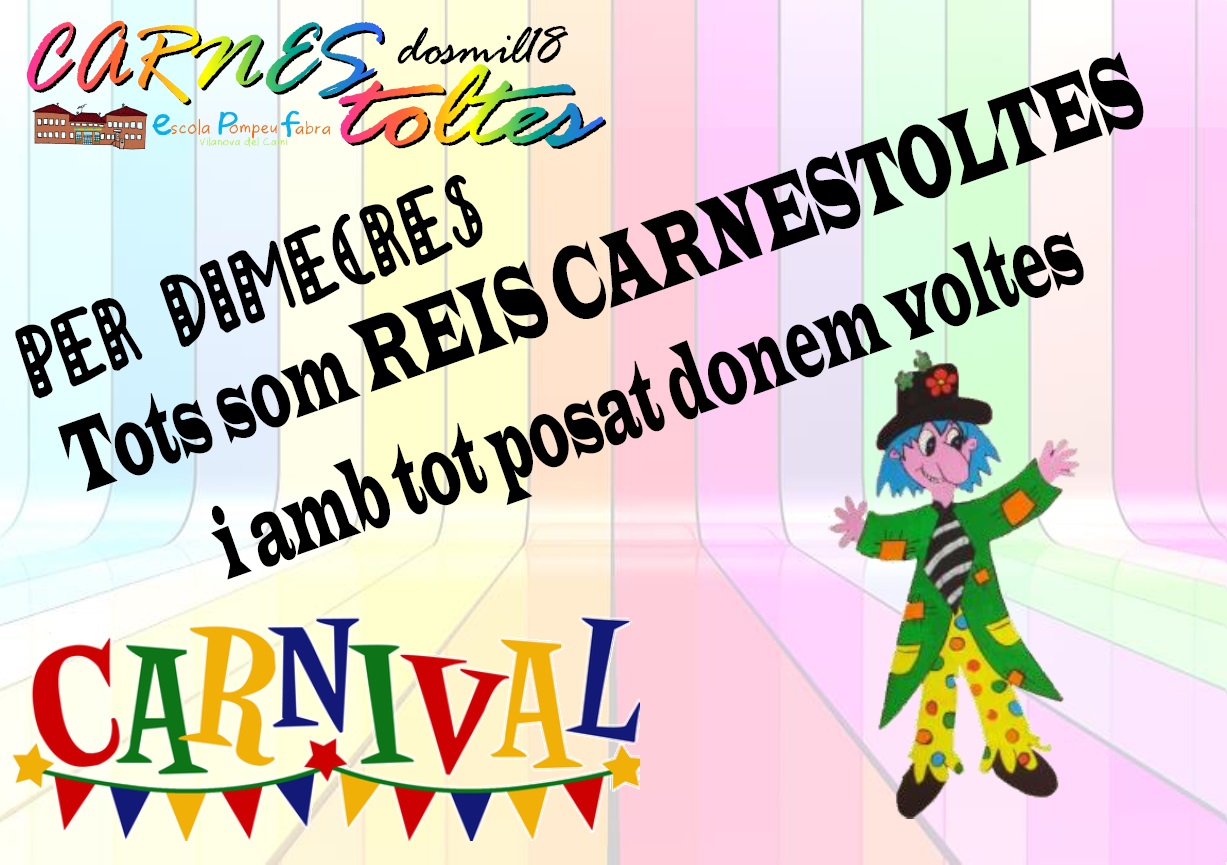 Els REIS CARNESTOLTES han arribat i la festa ha començat!!! Feu un comentari / Per admin / 7 de febrer de 2018 / General Infantil Portada Primària Aquí teniu les consignes d’aquest CARNAVAL 2018: