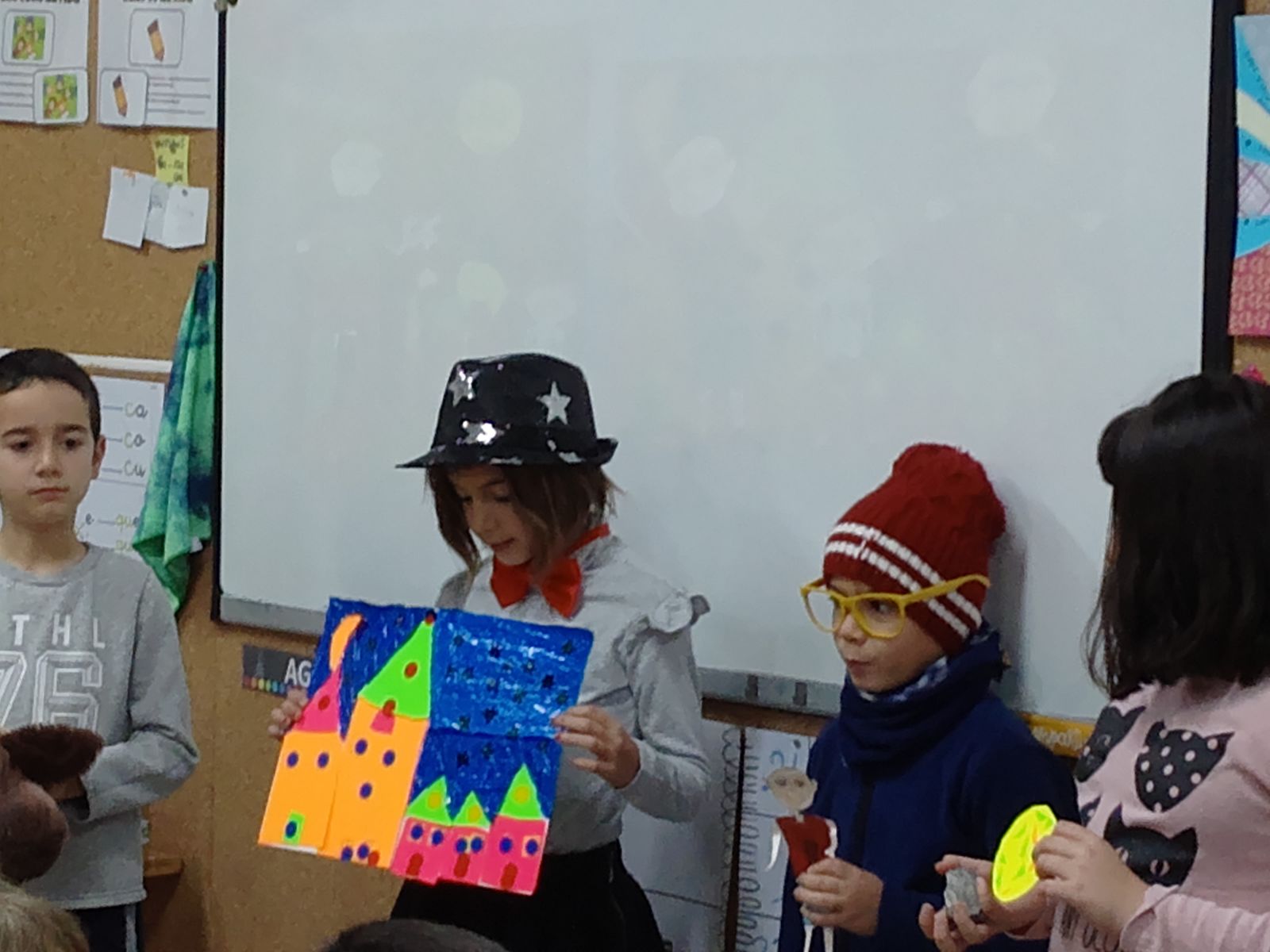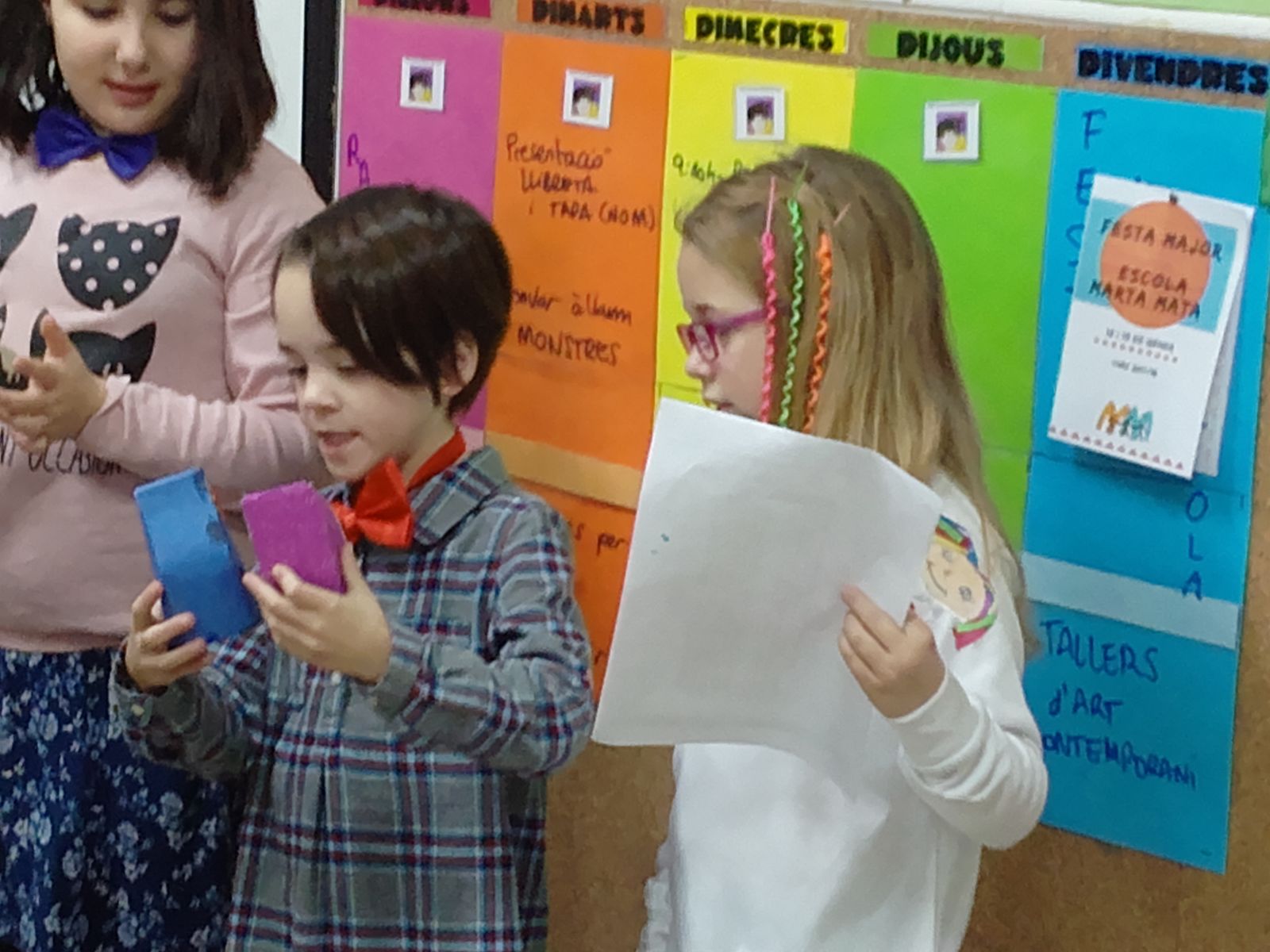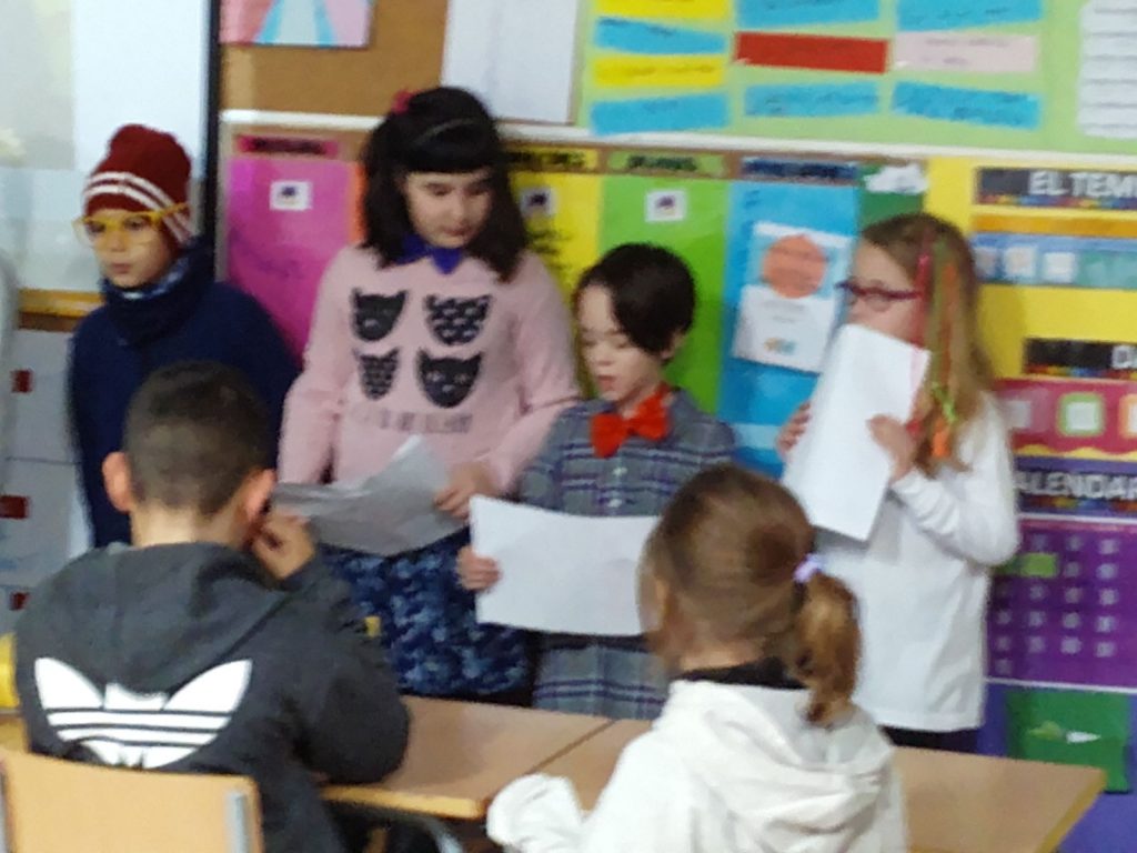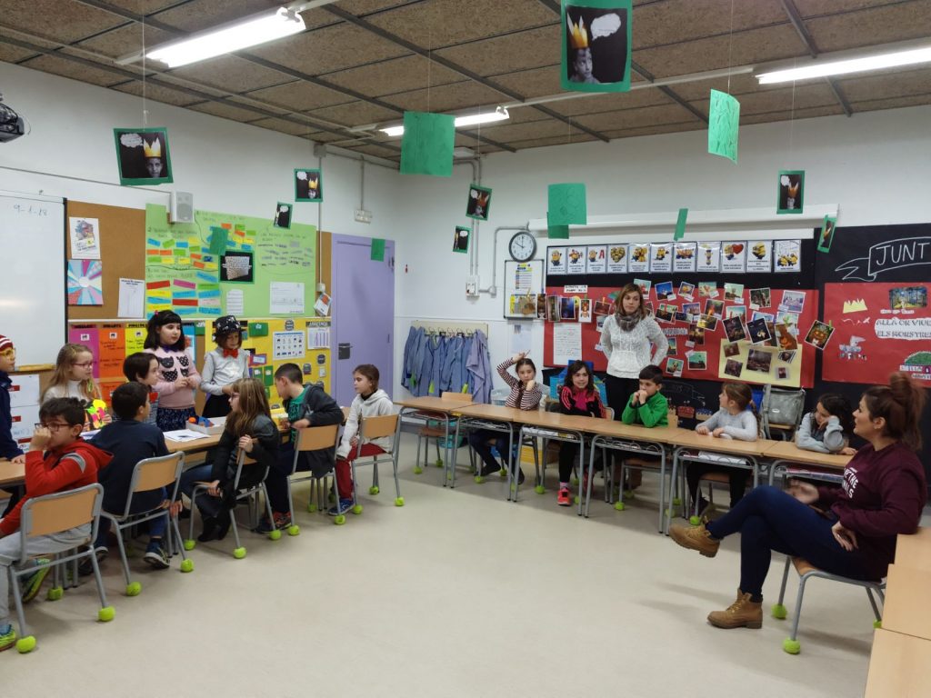Ara, estem just al principi de la proposta. L’alumnat de 3r de la nostra escola ja té acabat l’inici del conte i han anat a fer el traspàs a l’alumnat de 3r de l’Escola Marta Mata. Ells s’encarregaran del nus i l’alumnat de 3r de l’Escola Joan Maragall, el desenllaç.