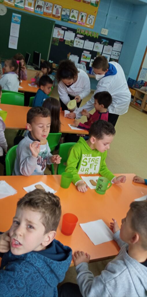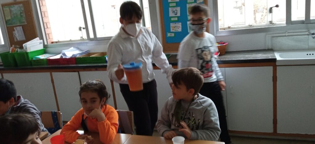 Els nens i nenes de 6è vam fer de cambrers i cambreres. Per fer-ho ben original vam repartir te i galetes per a tota l’escola.