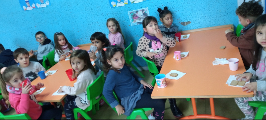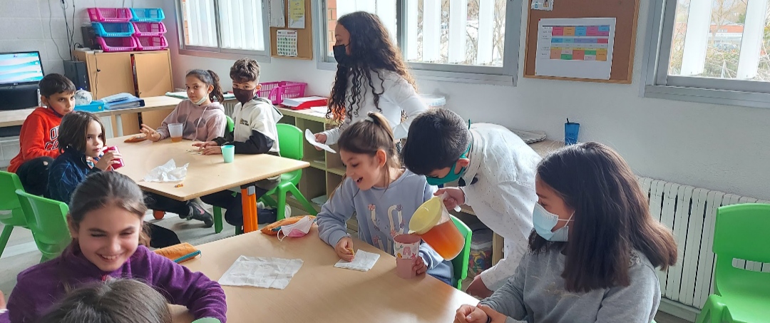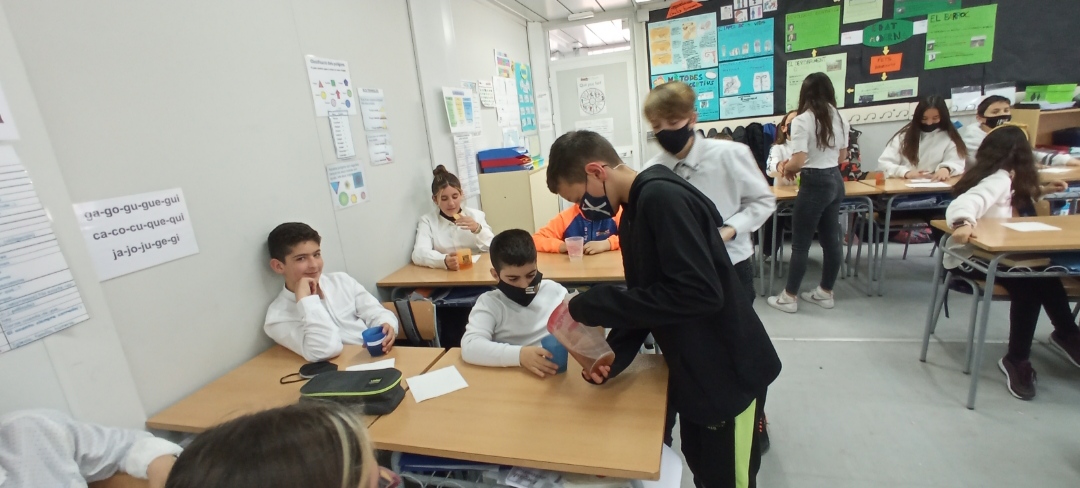 A causa de la pluja vam haver d’adaptar l’activitat i fer-ho a les aules, ja que el pati estava moll. Vam iniciar la festa amb una videotrucada on dos nens de la classe de 6è van dir unes paraules de benvinguda a la resta de classes de l’escola. Tot seguit, per parelles, vam anar a la classe que la mestra d’anglès ens havia assignat per servir el te i donar galetes tot parlant anglès i interpretant el paper de cambrers i cambreres.