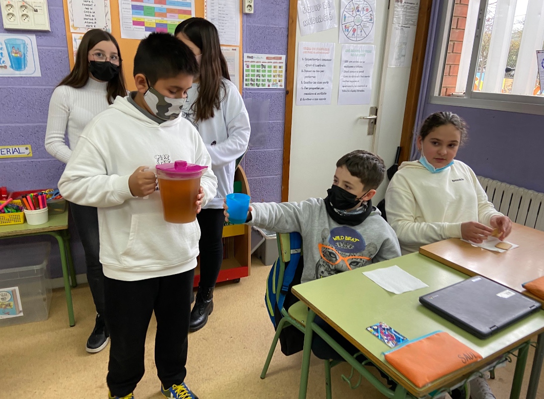 Els nens i nenes de 6è vam fer de cambrers i cambreres. Per fer-ho ben original vam repartir te i galetes per a tota l’escola.