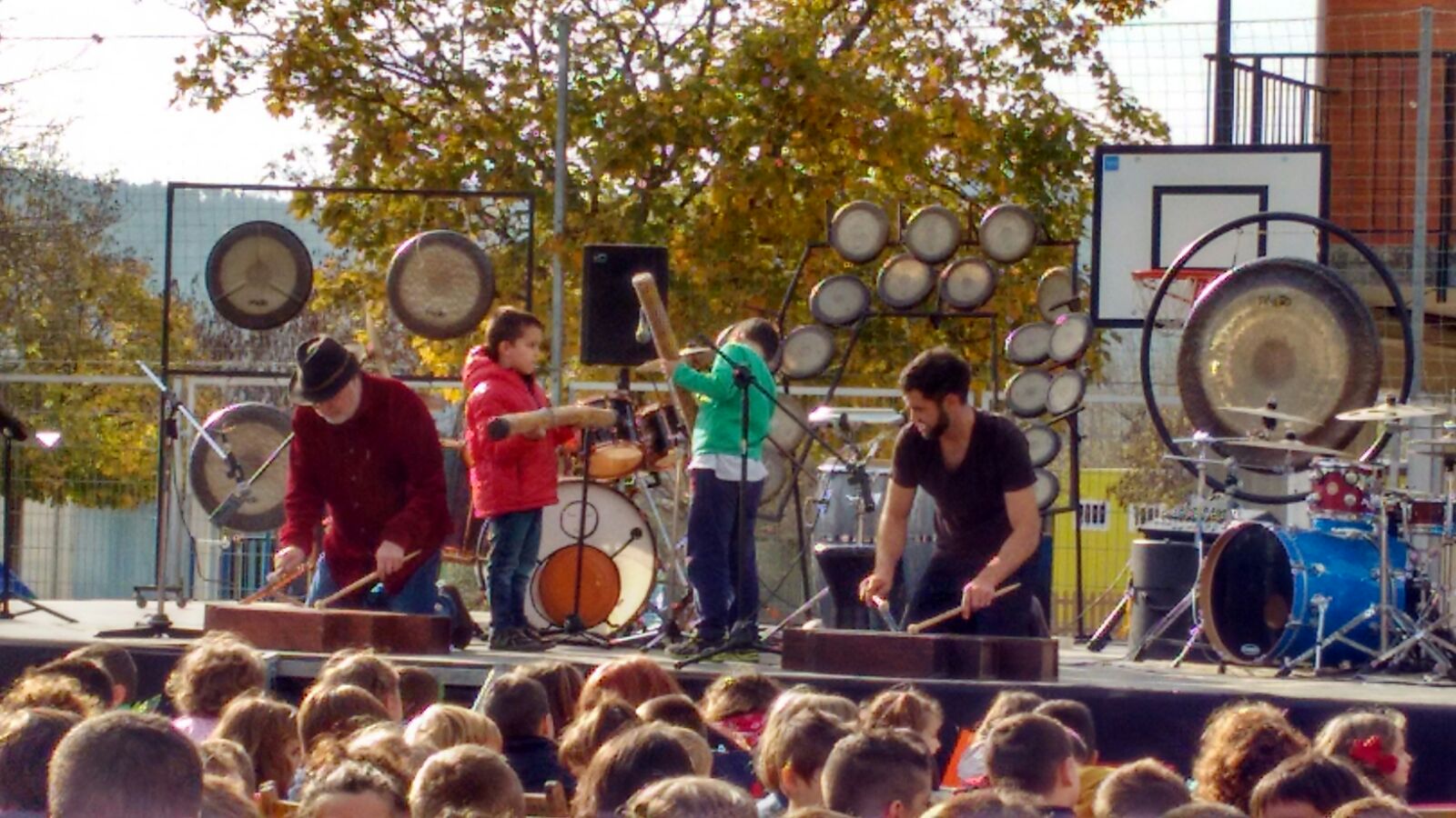 Avui, divendres 20 de novembre, en motiu de la Festa de la música, hem gaudit d’un concert de percussió amb uns músics reconeguts arreu del territori català, en Santi Arisa i el seu fill Dan Arisa.
