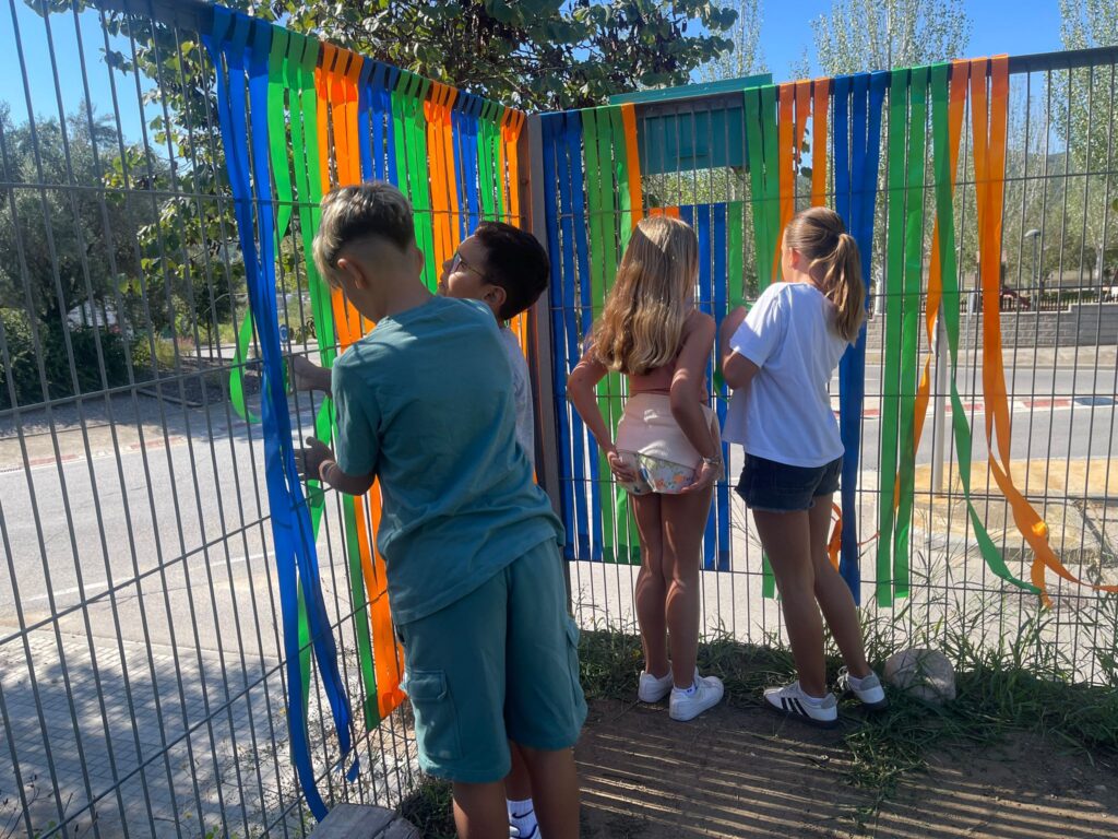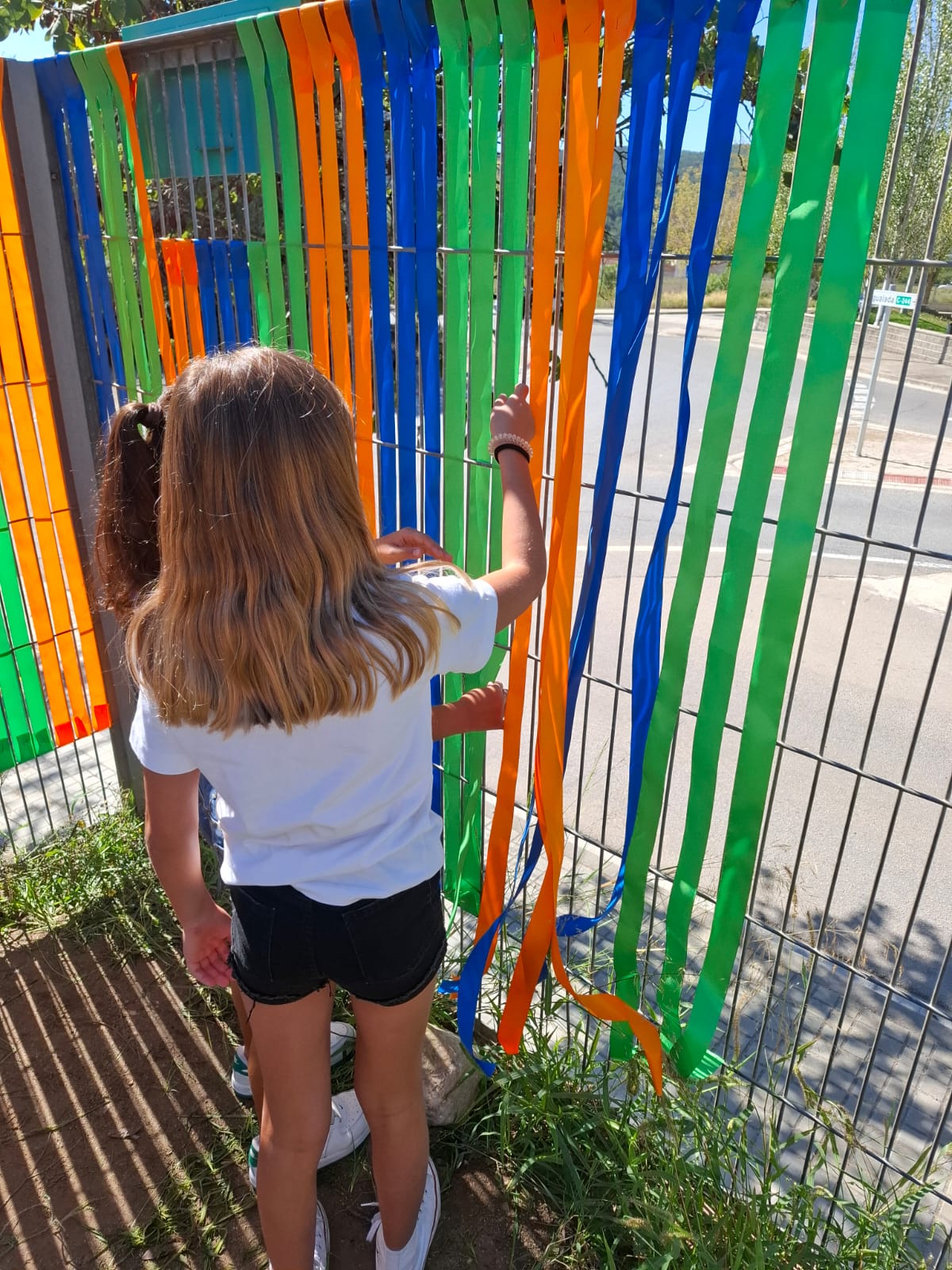 Durant el matí, l’alumnat ha pogut teixir part de la tanca de l’escola per demostrar que entre tots i totes formem un bon teixit compartint aprenentatges, habilitats, potencionalitats… per fer créixer el Pompeu.