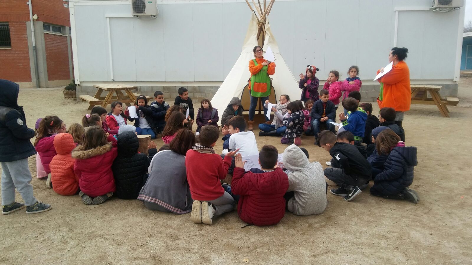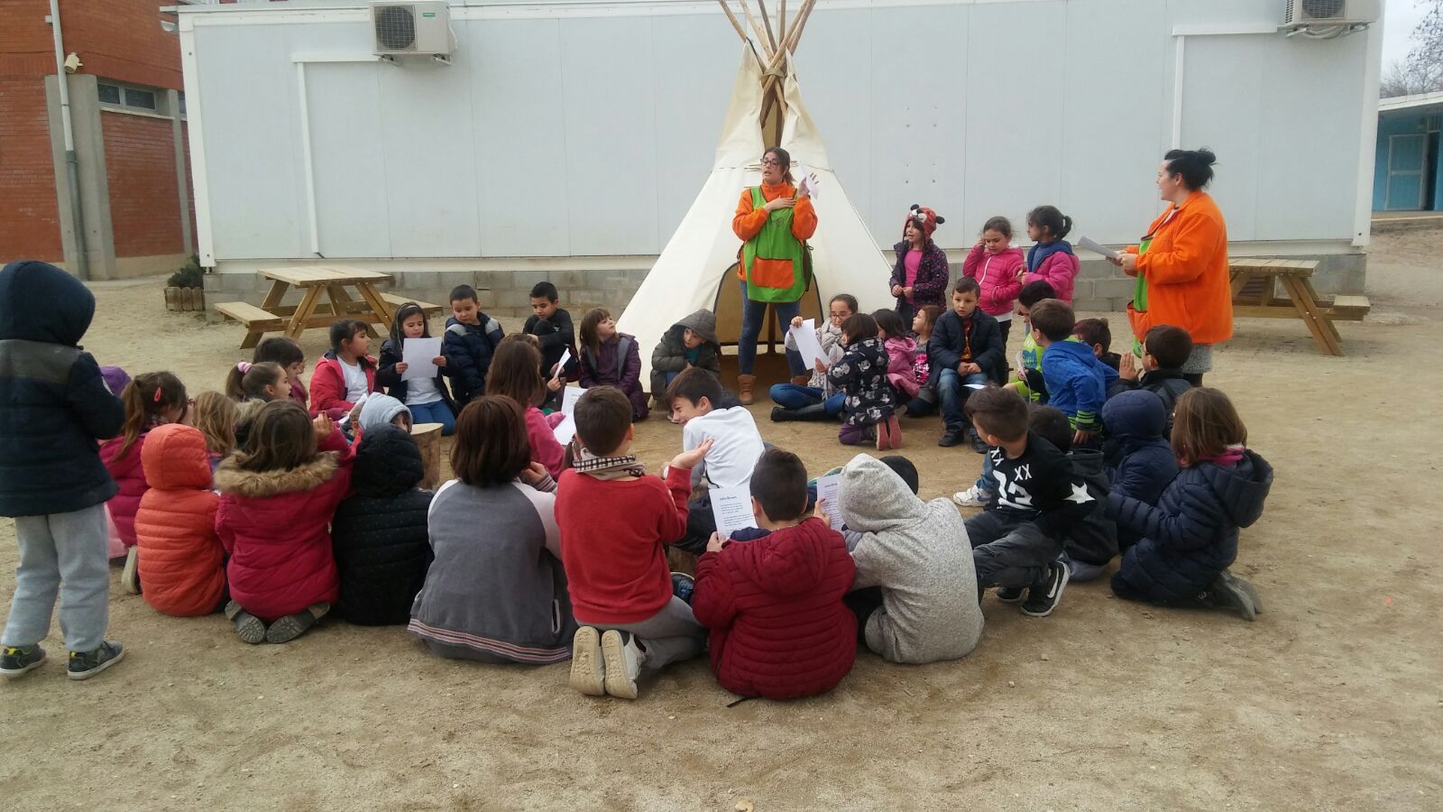 Avui els nens i nenes del menjador hem anat al tippi que tenim a l’escola i hem conegut al John Brown el petit indi.