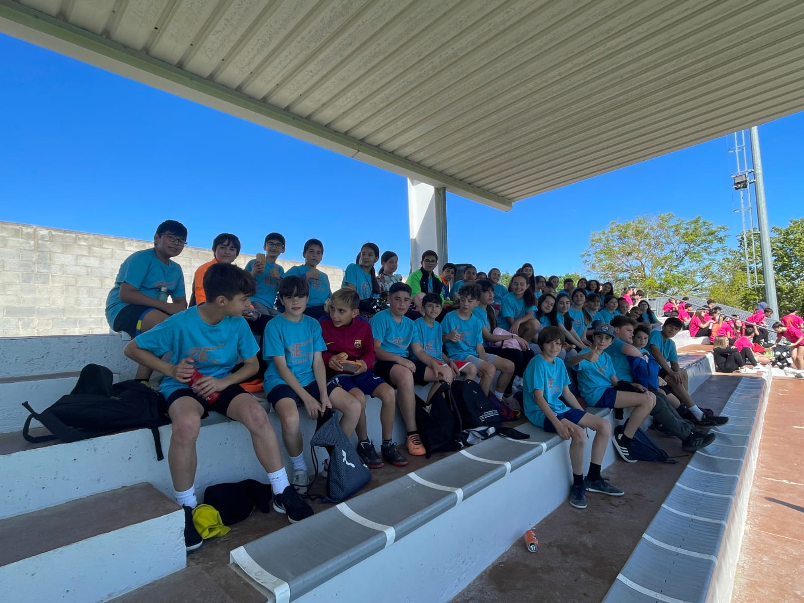 El passat divendres 3 de maig, l’alumnat de 6è de l’escola va participar en les trobades esportives organitzades per l’Institut Pla de les Moreres i dinamitzades per l’alumnat de 1r de Batxillerat. Van ser unes jornades de convivència ludicoesportives on van poder gaudir i compartir d’esports i jocs diversos amb els companys i companyes de 6è de les altres escoles de Vilanova del Camí i amb l’alumnat de 1r d’ESO. Les activitats es van dur a terme al Camp de futbol de Can Titó on, després de la presentació de les jornades i posterior reagrupament de tots els nens i nenes participants, es va començar les competicions amb esports com el 4 en ratlla, futbol, ringo, futbol flag, hoquei i volei llençol. Per acabar les jornades es va fer una fotografia amb tot l’alumnat que hi va participar.