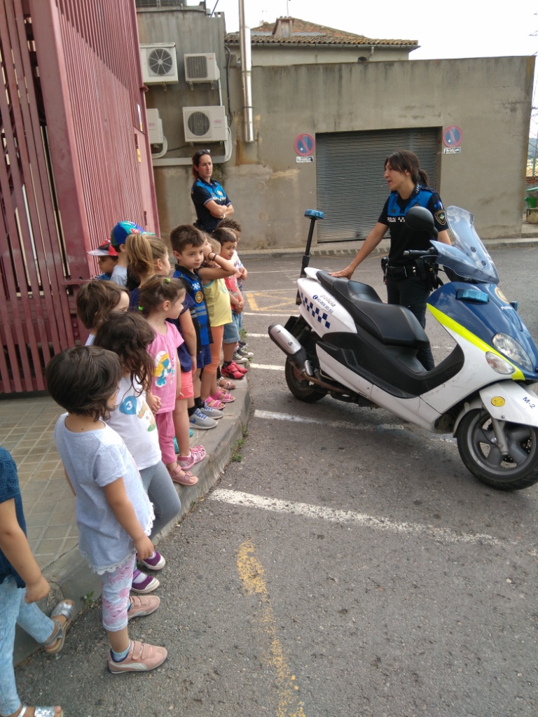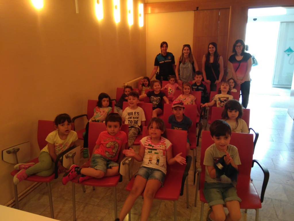 La classe de la Rínxols d’Or ha visitat aquesta tarda la comissaria de policia local del nostre municipi. Degut al gran interès mostrat per l’alumnat del grup per la feina que desenvolupen els agents de policia local, amb aquesta visita, han pogut resoldre molts dels seus dubtes així com conèixer les dependències policials alhora que varis agents els explicaven en que consisteix la seva feina i quines tasques desenvolupen.