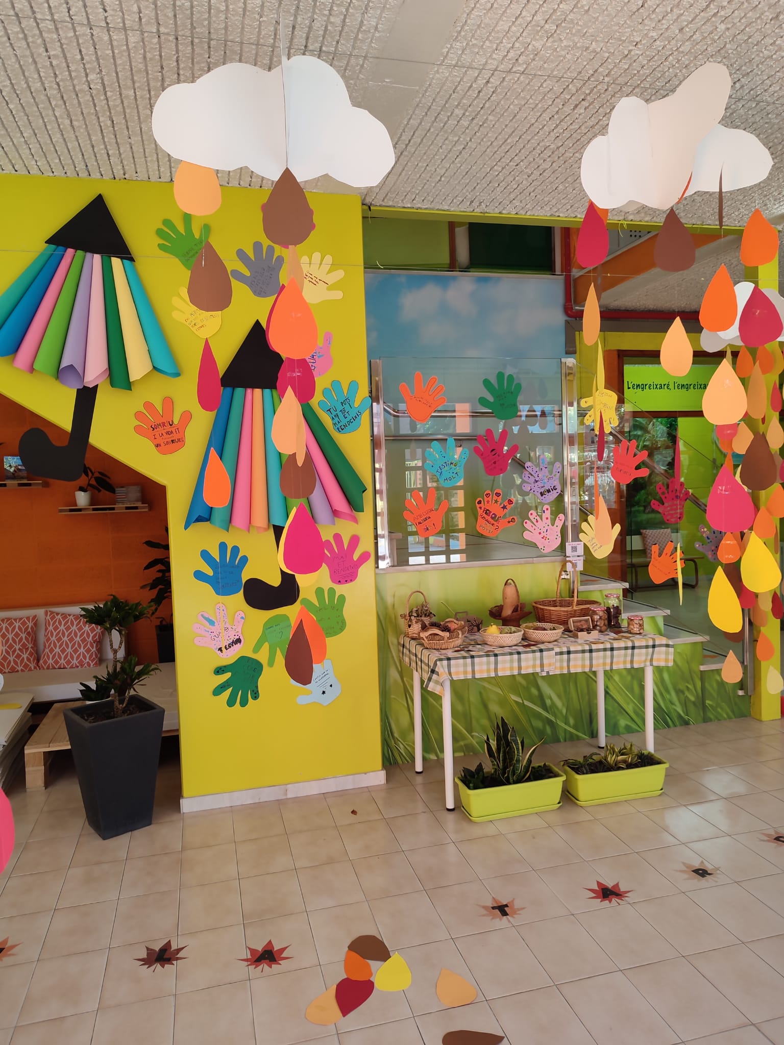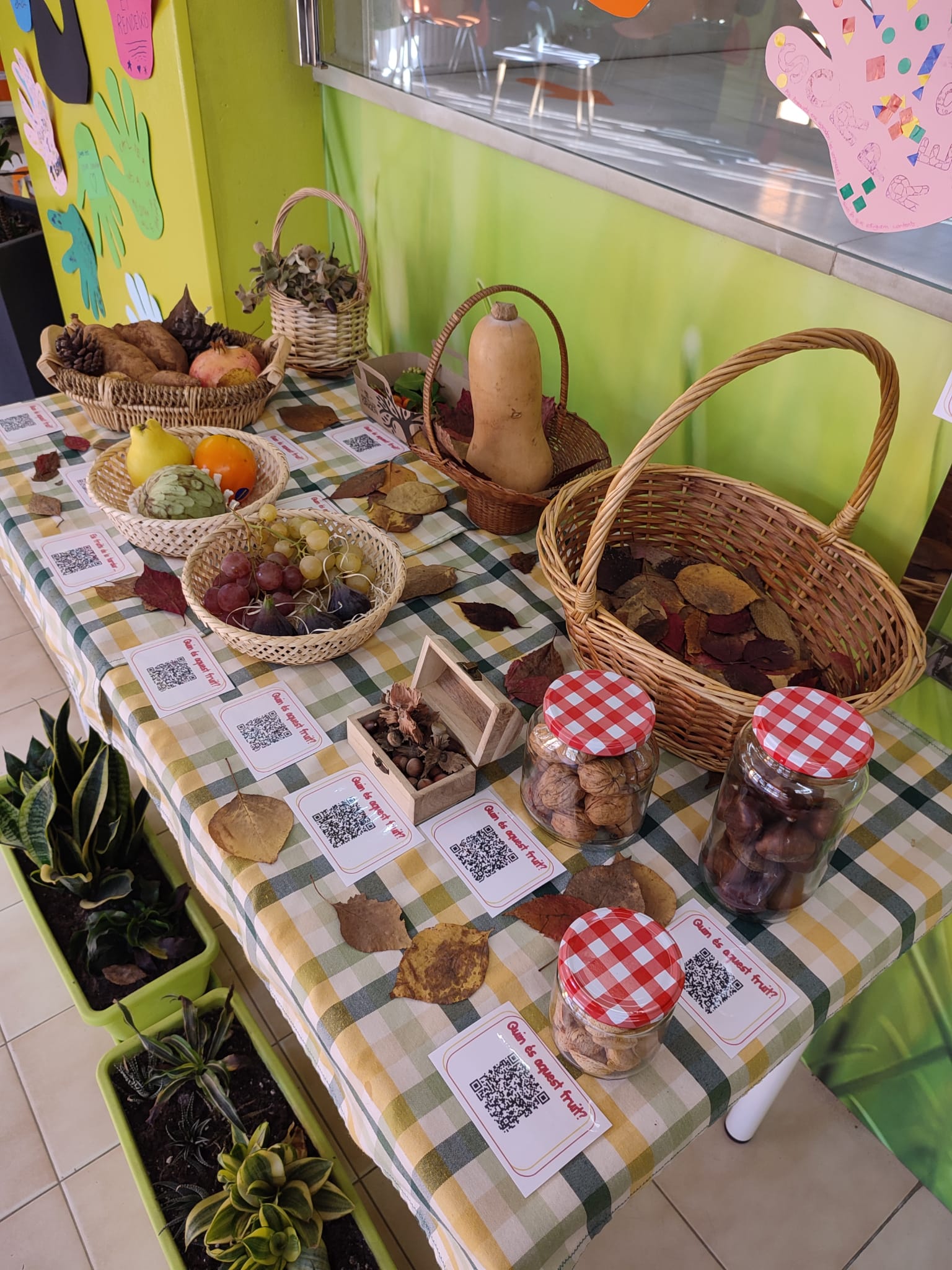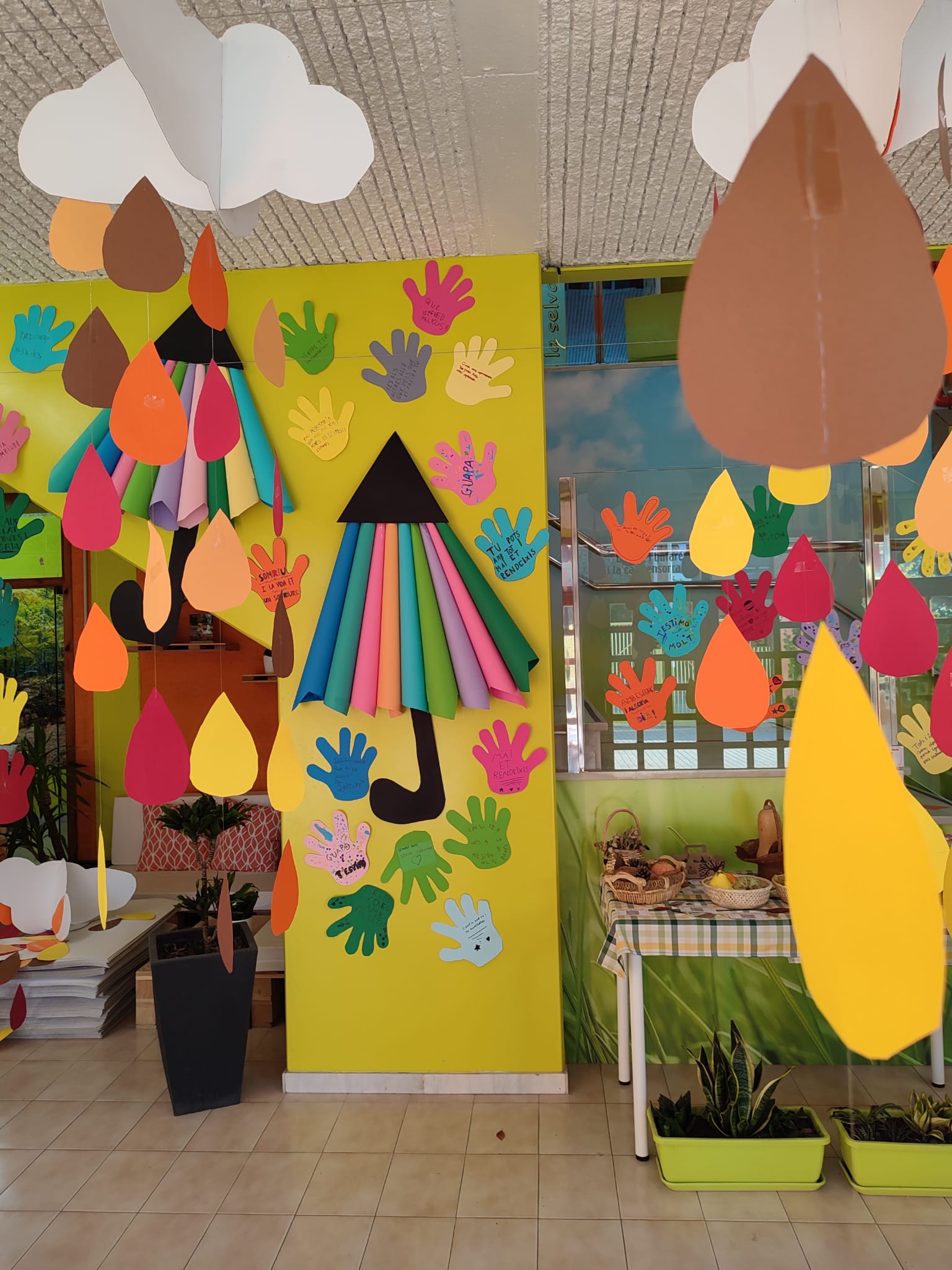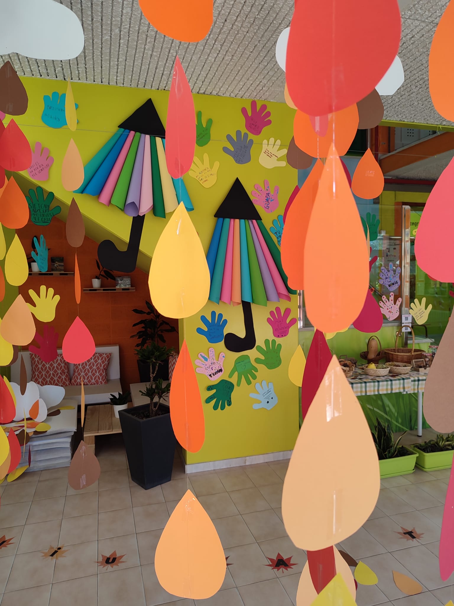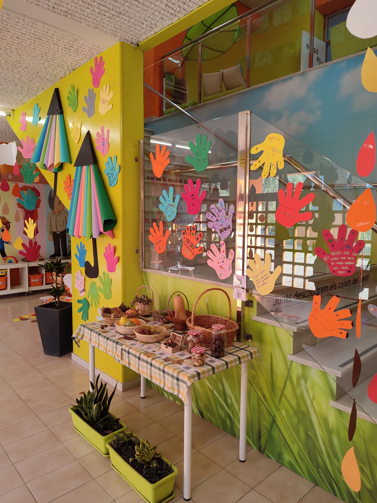 Els vestíbuls de l’escola llueixen amb núvols plens de gotes de tardor, paraigües de colors amb mans de desitjos i una bona paradeta de fruits de la tardor que inclou un joc per esbrinar els fruits amb codis qr. L’alumnat anirà visitant la paradeta del vestíbul principal i podran fer la lectura dels diferents qr i conèixer les característiques principals dels fruits i, a més, podran jugar amb activitats interactives seleccionades per a tots i totes.
