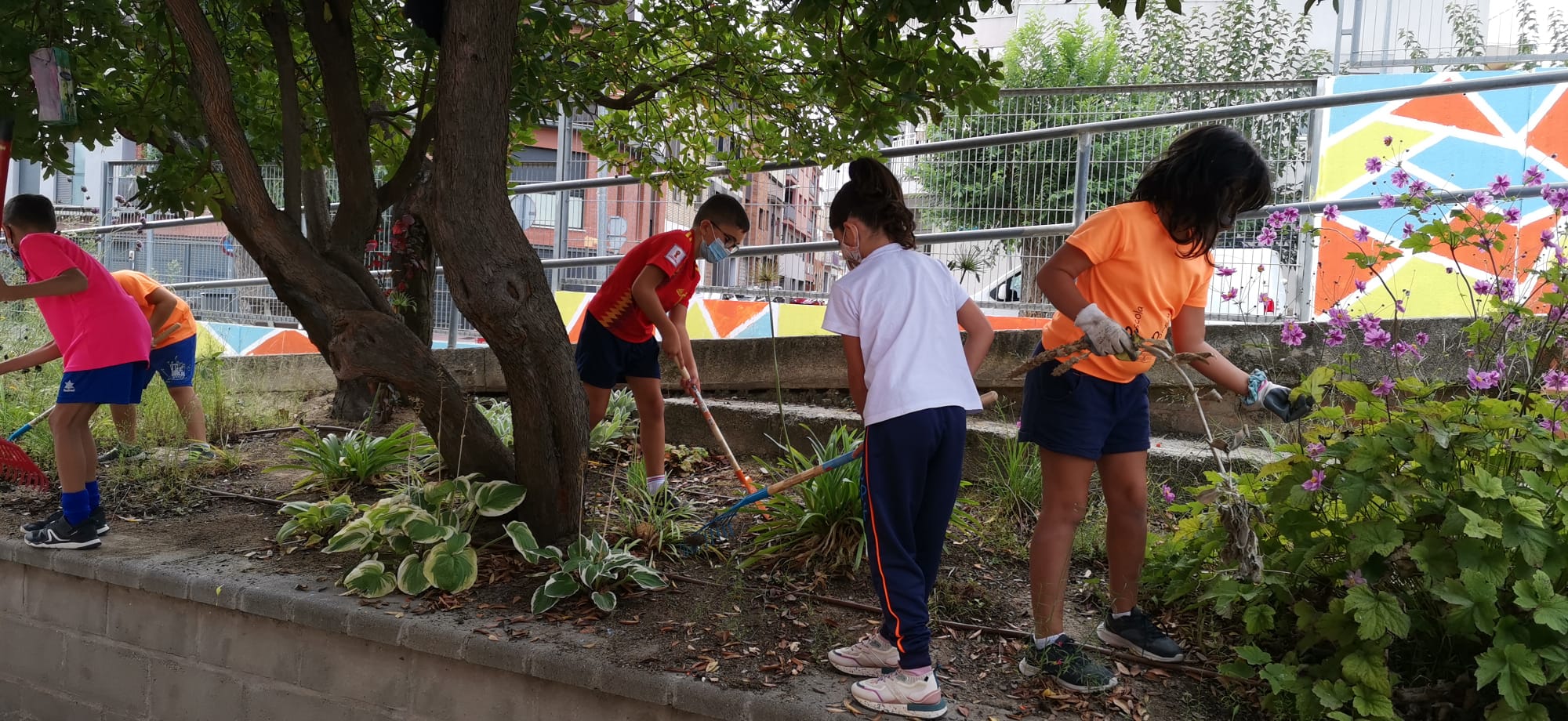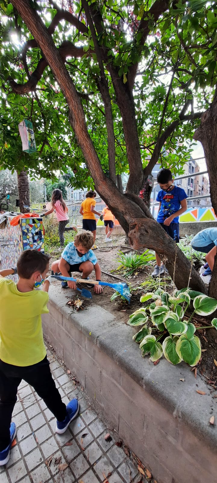 Avui hem començat la tasca d’Escola Verda amb l’alumnat de 3r, al nostre jardinet de plantes vivaces que tenim a l’entrada de l’escola.