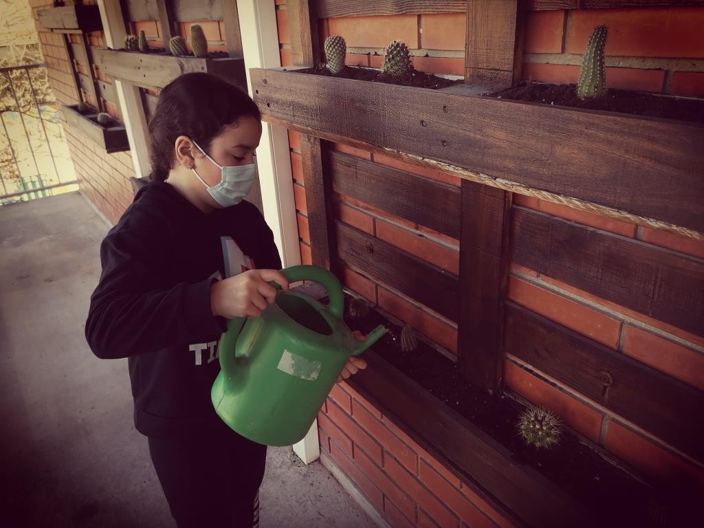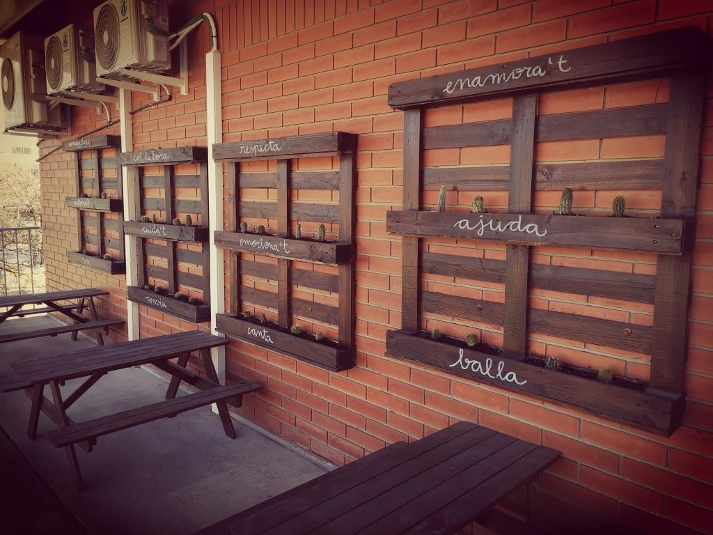 Avui, han arreglat els palets de plantes, plantant diferents cactus, posant terra, regant… i han col.locat unes paraules boniques ben motivadores.