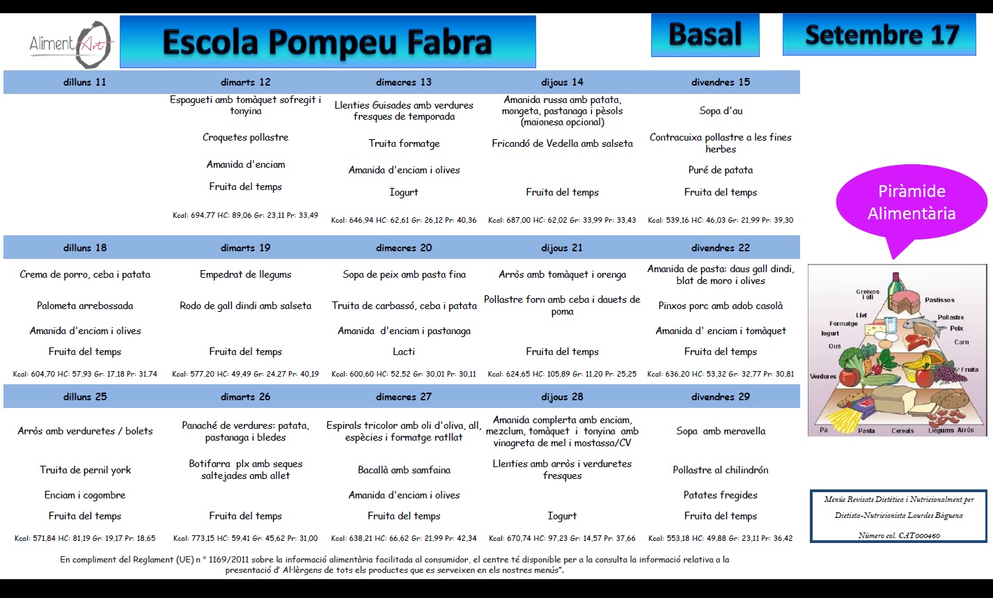 Menjador escolar: menús Feu un comentari / Per admin / 20 de setembre de 2017 / AMPA General Portada Ja podeu consultar els menús mensuals a l’apartat de menjador.