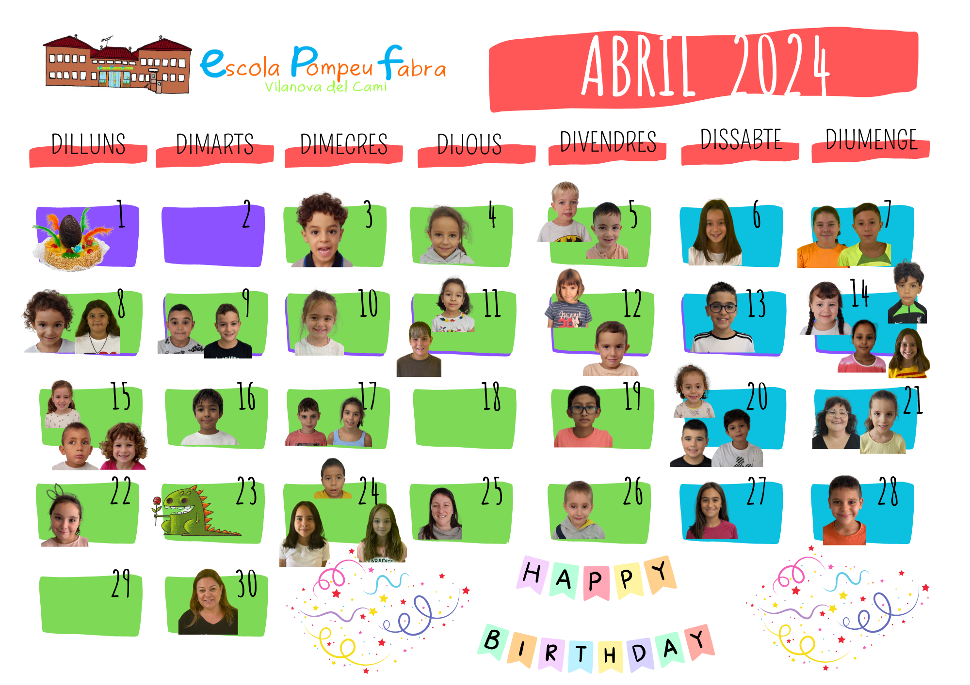 MOLTES FELICITATS A TOTS I TOTES ELS D’ABRIL!!! Feu un comentari / Per admin / 31 de març de 2024 / General Infantil Portada Primària Moltes felicitats a tots i totes els que celebreu el vostre aniversari aquest mes d’ABRIL!!!