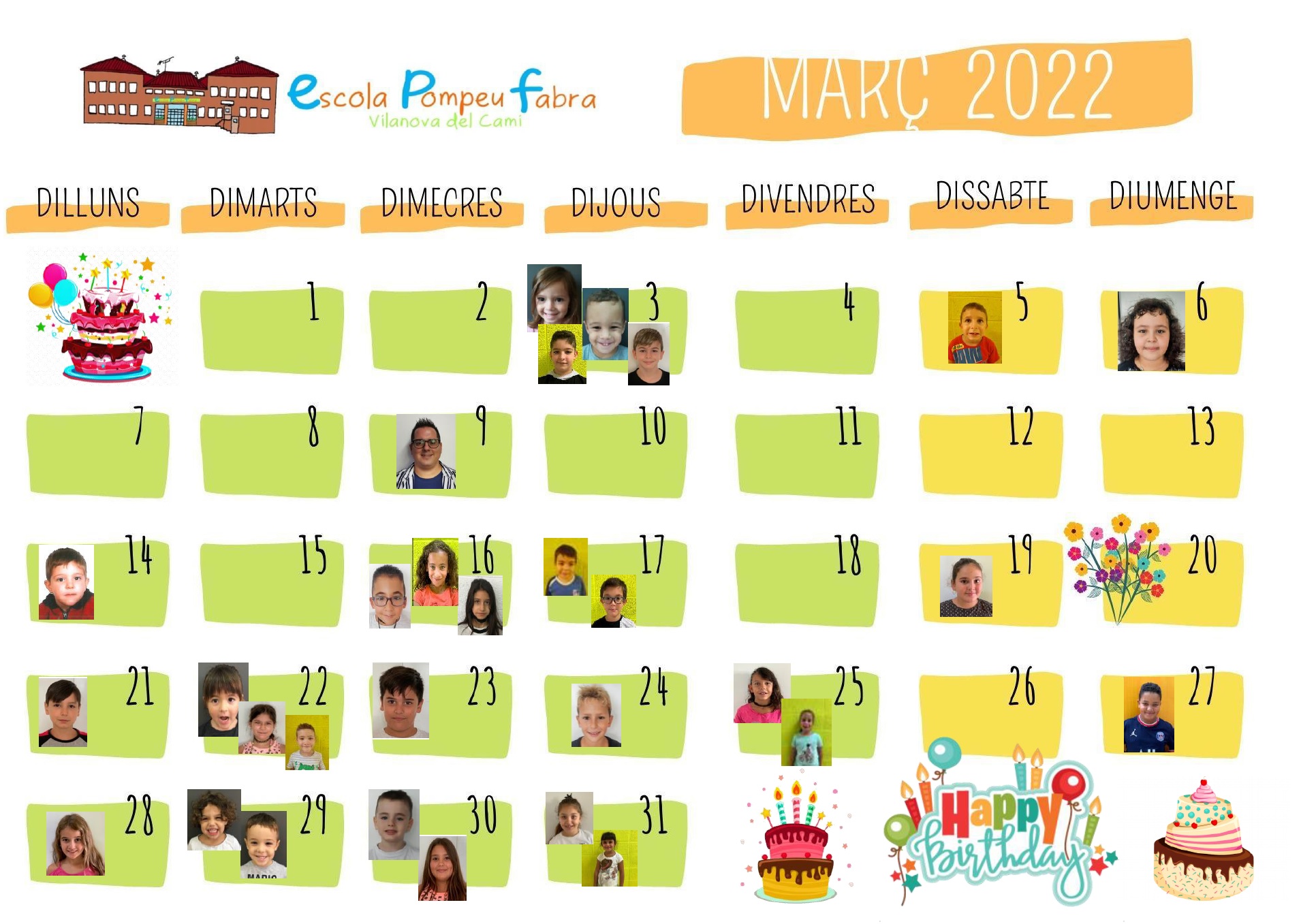 MOLTES FELICITATS A TOTS I TOTES ELS DE MARÇ!!! Feu un comentari / Per admin / 28 de febrer de 2022 / General Infantil Portada Primària MOLTES FELICITATS a tots i totes els que celebreu el vostre aniversari aquest mes de MARÇ!!!