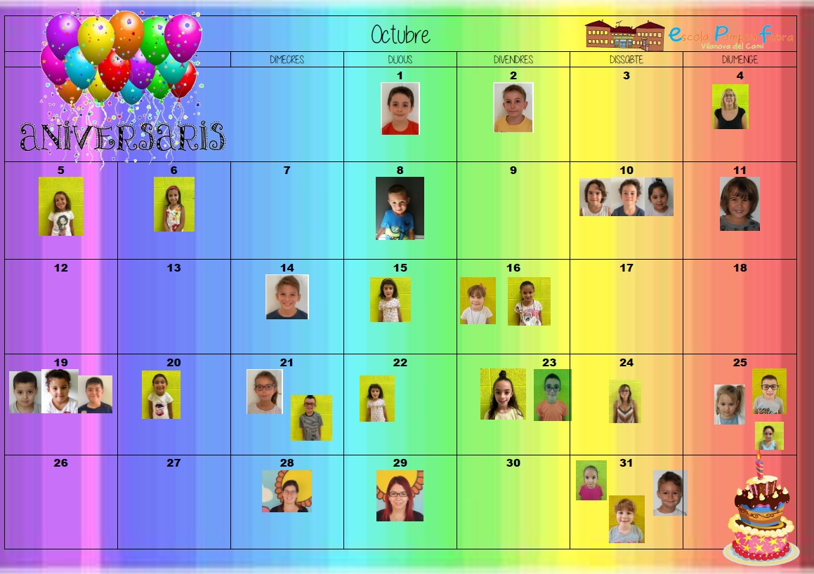 MOLTES FELICITATS!!! Feu un comentari / Per admin / 1 d'octubre de 2020 / General Infantil Portada Primària Moltes felicitats a tots i totes els que feu anys aquest mes d’OCTUBRE!!!
