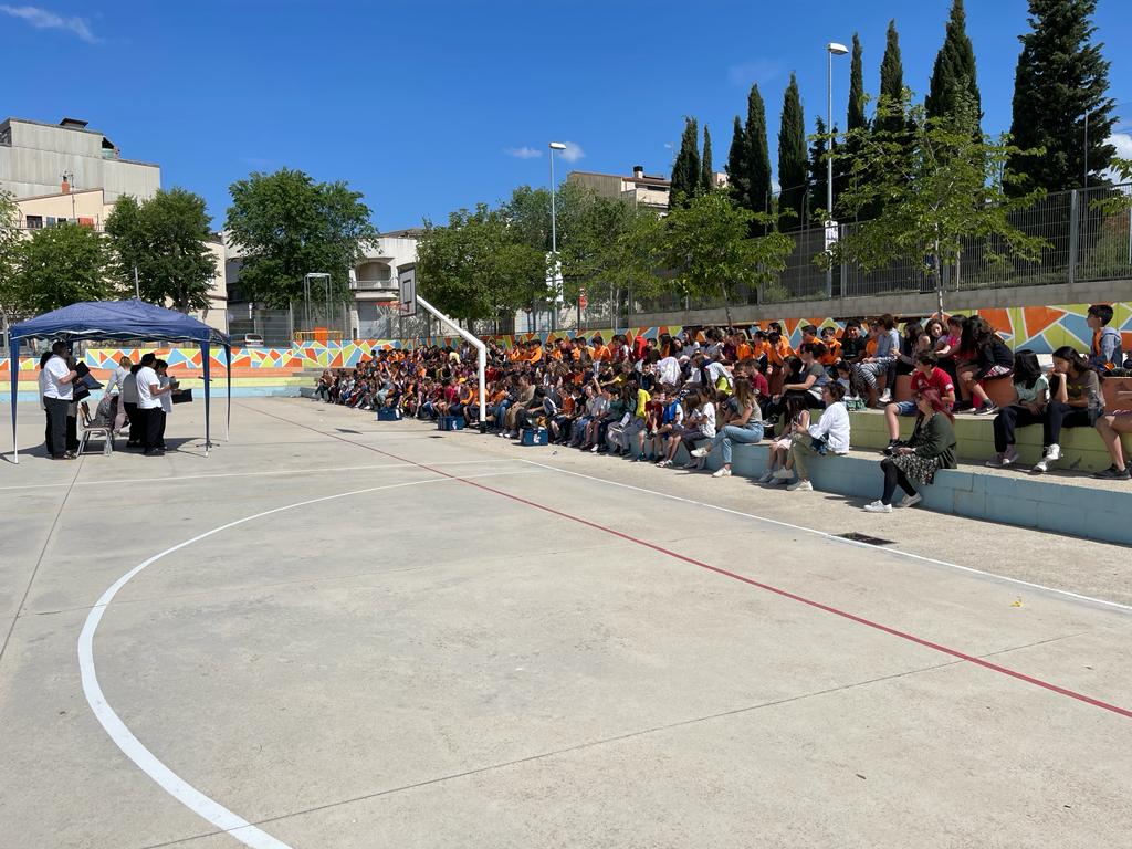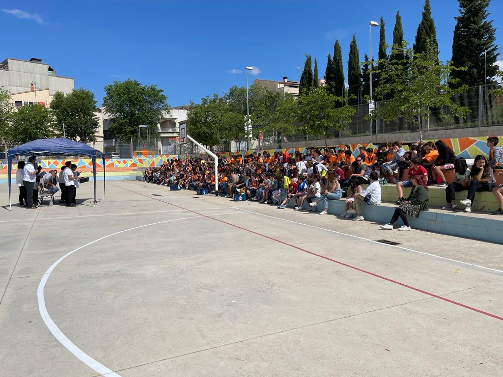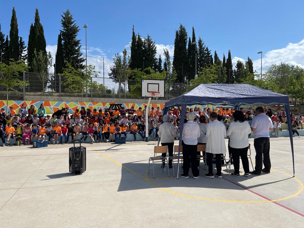 L’alumnat de l’escola va compartir aquests moments amb ganes i il·lusió i va animar als cantants amb molta alegria.