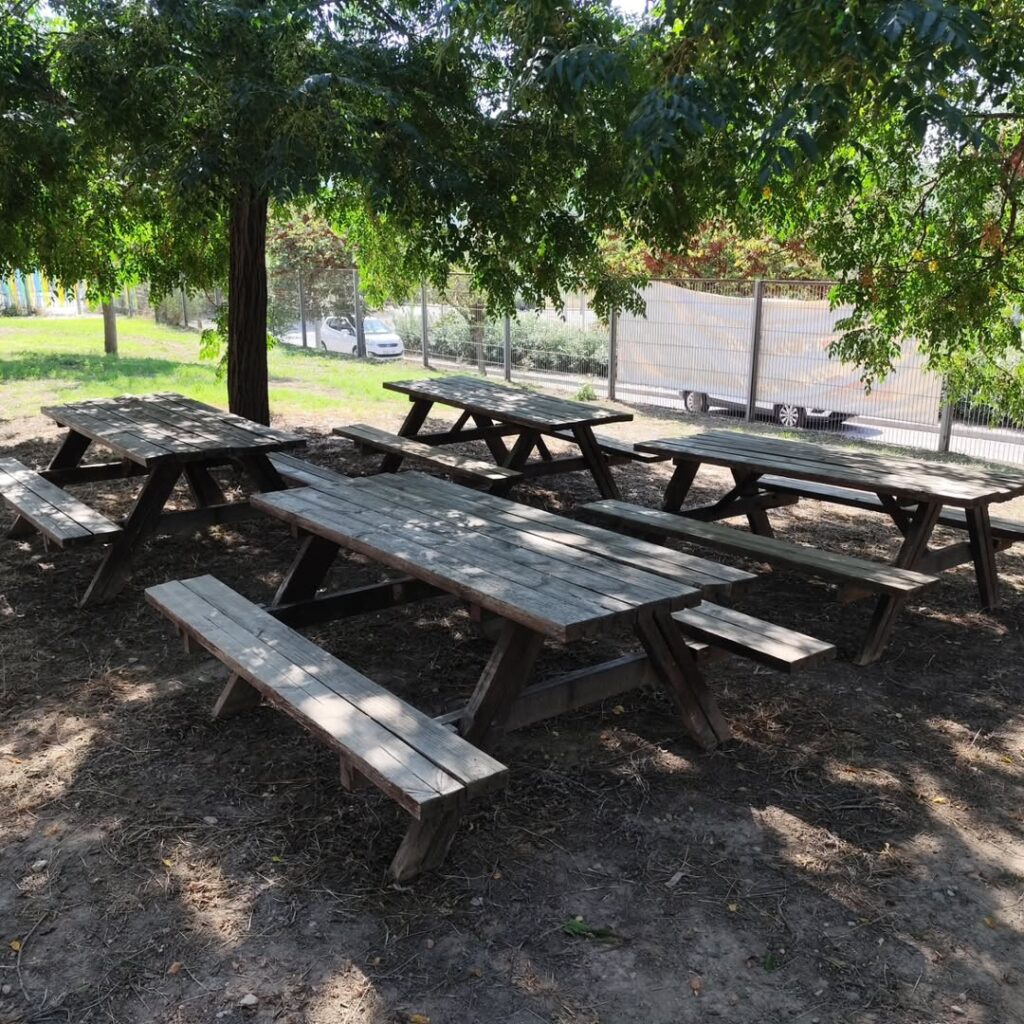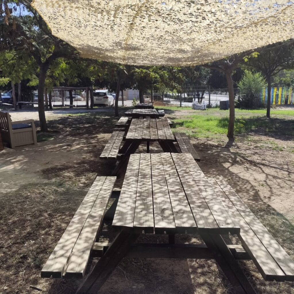 Actualment s’han col.locat nous espais d’ombra amb les taules de pícnic per poder esmorzar, fer alguna sessió de classe i, sobretot, compartir amb la comunitat.