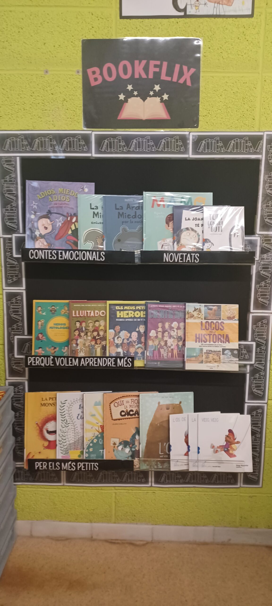 NOVA CARTELLERA A LA BIBLIOTECA Feu un comentari / Per Notícies web / 10 de novembre de 2022 / General Infantil Portada Primària Estrenem nova cartellera a la biblioteca de l’escola . És un BOOKFLIX, on hi trobareu novetats de la bibioteca, recomanacions per temàtica concreta i on podreu consultar les últimes adquisicions. Veniu a la biblio i obriu el vostre món!