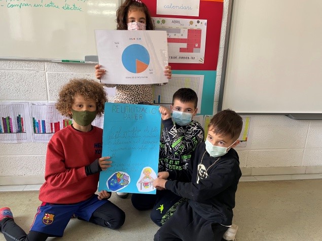 Els alumnes del Flautista D’Hamelín i el Soldadet de Plom, van treballar l’ODS número 12: producció i consum responsables. Al llarg de tota la setmana van treballar per grups i van investigar si el consum de llum, paper, aigua, menjar i reciclatge a l’escola era responsable o calia millorar-lo. Després d’observar totes les classes una a una, van anotar els resultats en unes gràfiques per poder treure’n una conclusió. A partir d’aquestes es van adonar que hi havia coses que fèiem bé, però n’hi havia d’altres que calia millorar. En aquests casos van pensar entre tots i totes diferents solucions que finalment les delegades verdes de les dues classes, van explicar a tota l’escola per crear-ne consciència i canvi per a un món més sostenible.