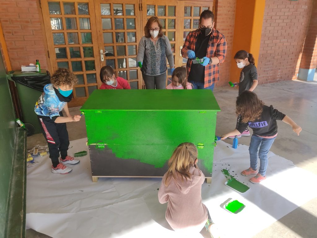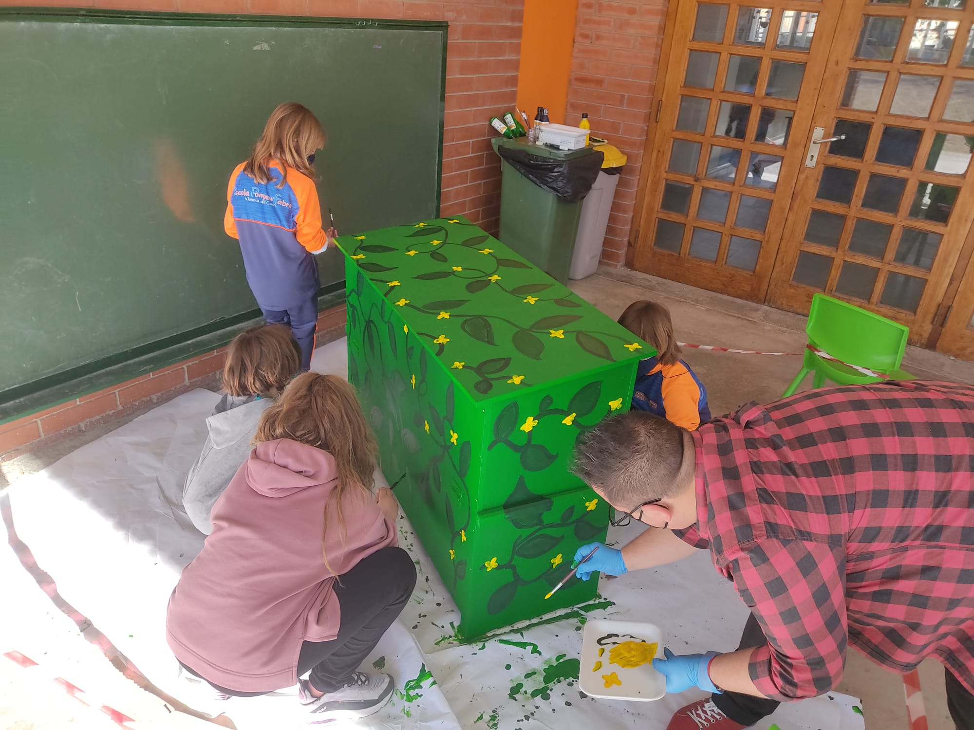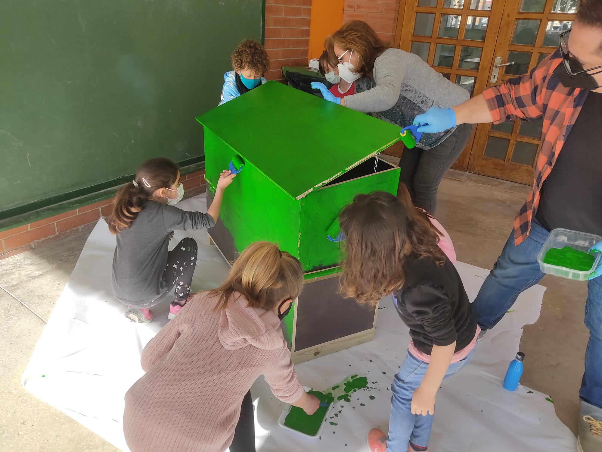 Des de la regidoria se’ns ha demanat a l’escola si volíem pintar una de les 5 cassetes que han confeccionat (per part d’un fuster del municipi) i així millorar les condicions de les colònies de gats.
