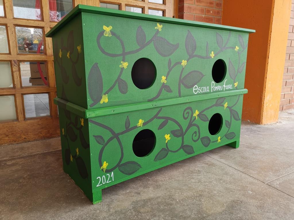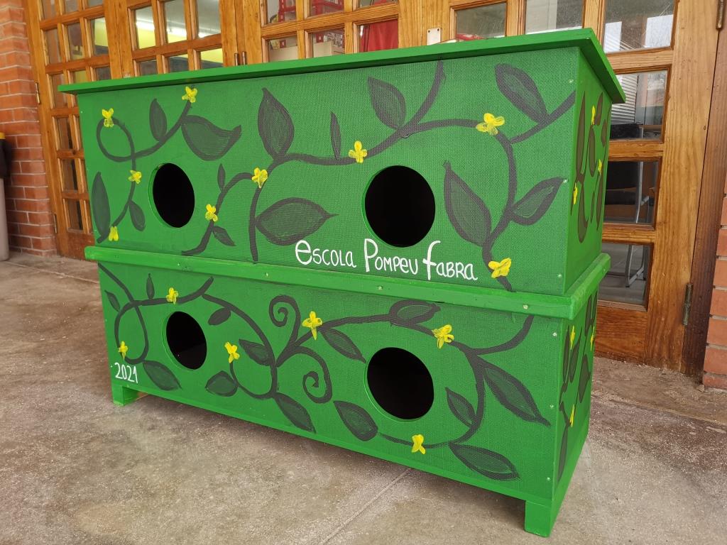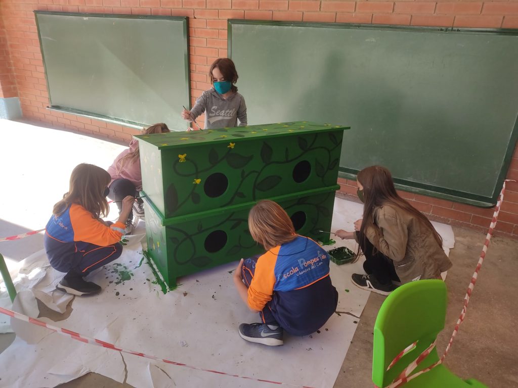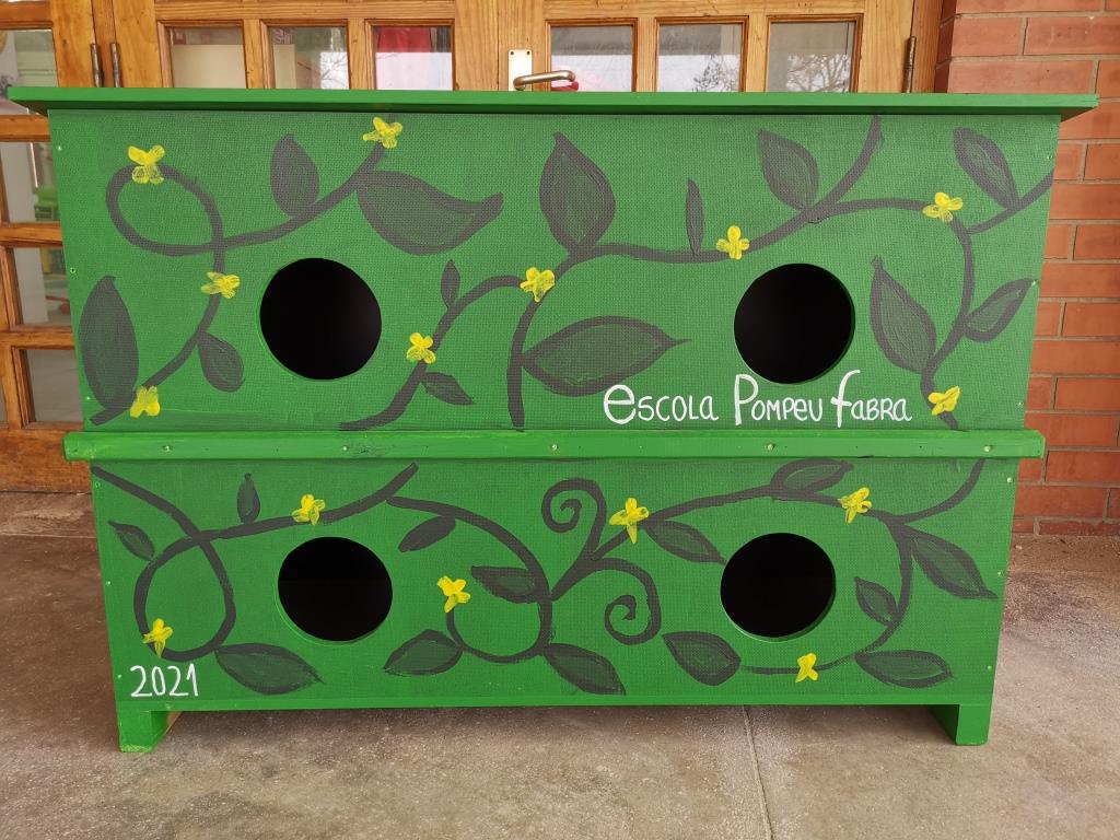 Des de la regidoria se’ns ha demanat a l’escola si volíem pintar una de les 5 cassetes que han confeccionat (per part d’un fuster del municipi) i així millorar les condicions de les colònies de gats.