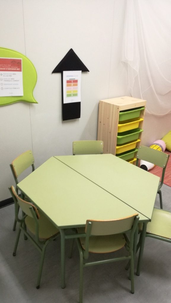 Aquí teniu exemples dels espais de la calma creats com a zones de confort per a activitats de relaxació i trobades entre alumnat i tutors/es, individuals i en petit grup, per treballar l’eix transerval del curs: T’escolto… També podrem gaudir, en breu, del nou accés per a les famílies d’Ed.Infantil i de pancartes a la façana de l’escola que recullen els projectes de centre. Aquestes són algunes de les novetats del curs que anirem ampliant per millorar el nostre Pompeu!