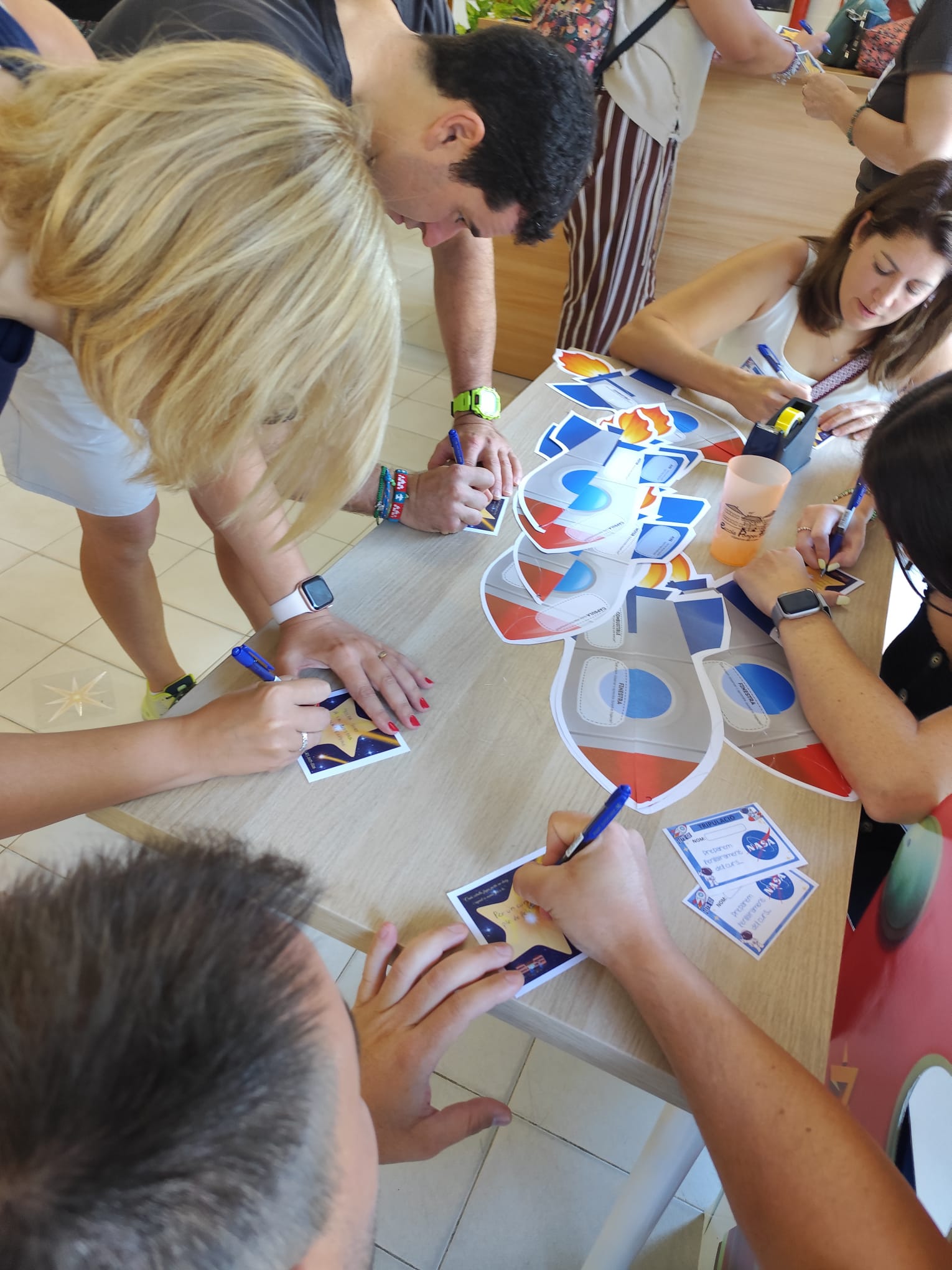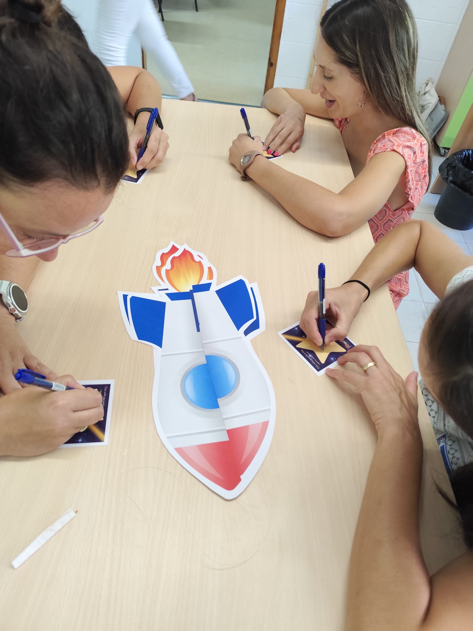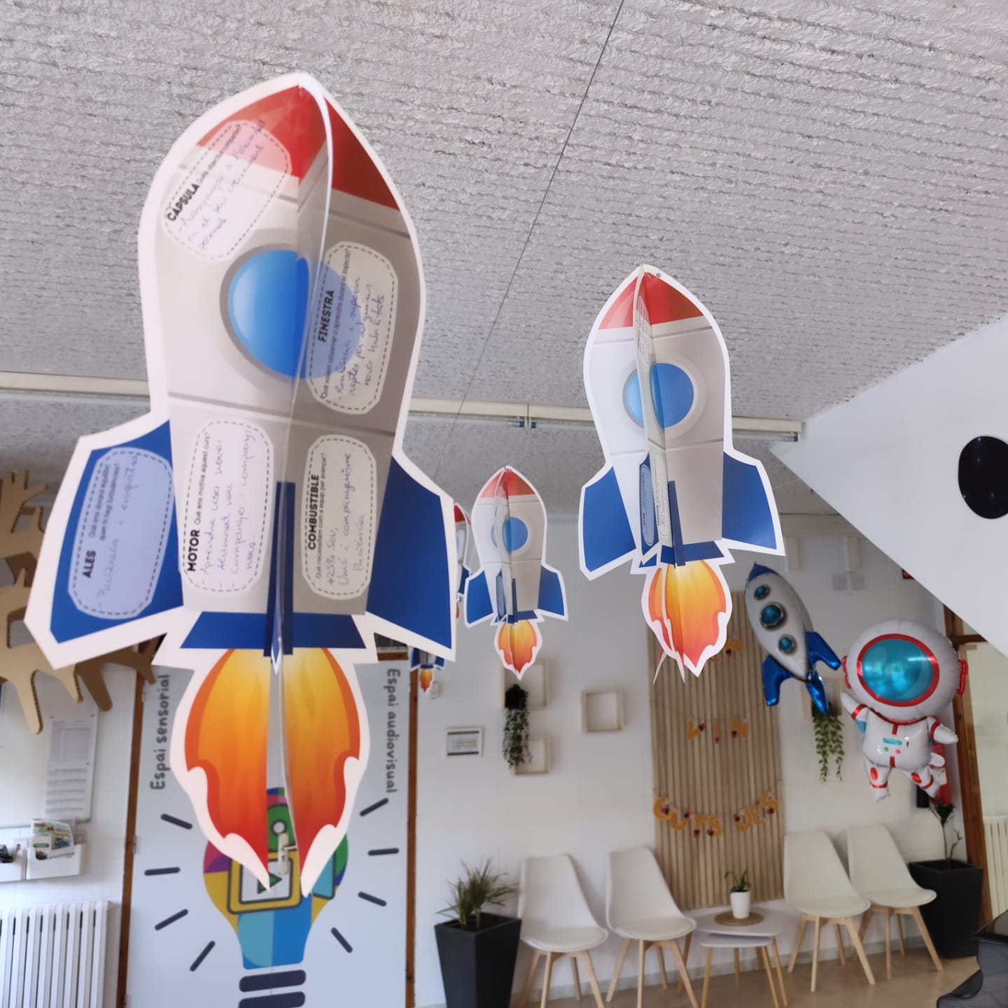 Com si arribessin a una estació espacial, l’Equip Directiu (membres de la NASA) va rebre a la tripulació amb una bona decoració plena de coets, estrelles i astronautes. Amb l’entrega de constel·lacions van crear grups i cadascú va rebre la seva estrella fugaç amb el desig d’un company/a relacionat amb el nou curs. Després van crear el seu propi coet i el van fer volar al sostre del vestíbul.