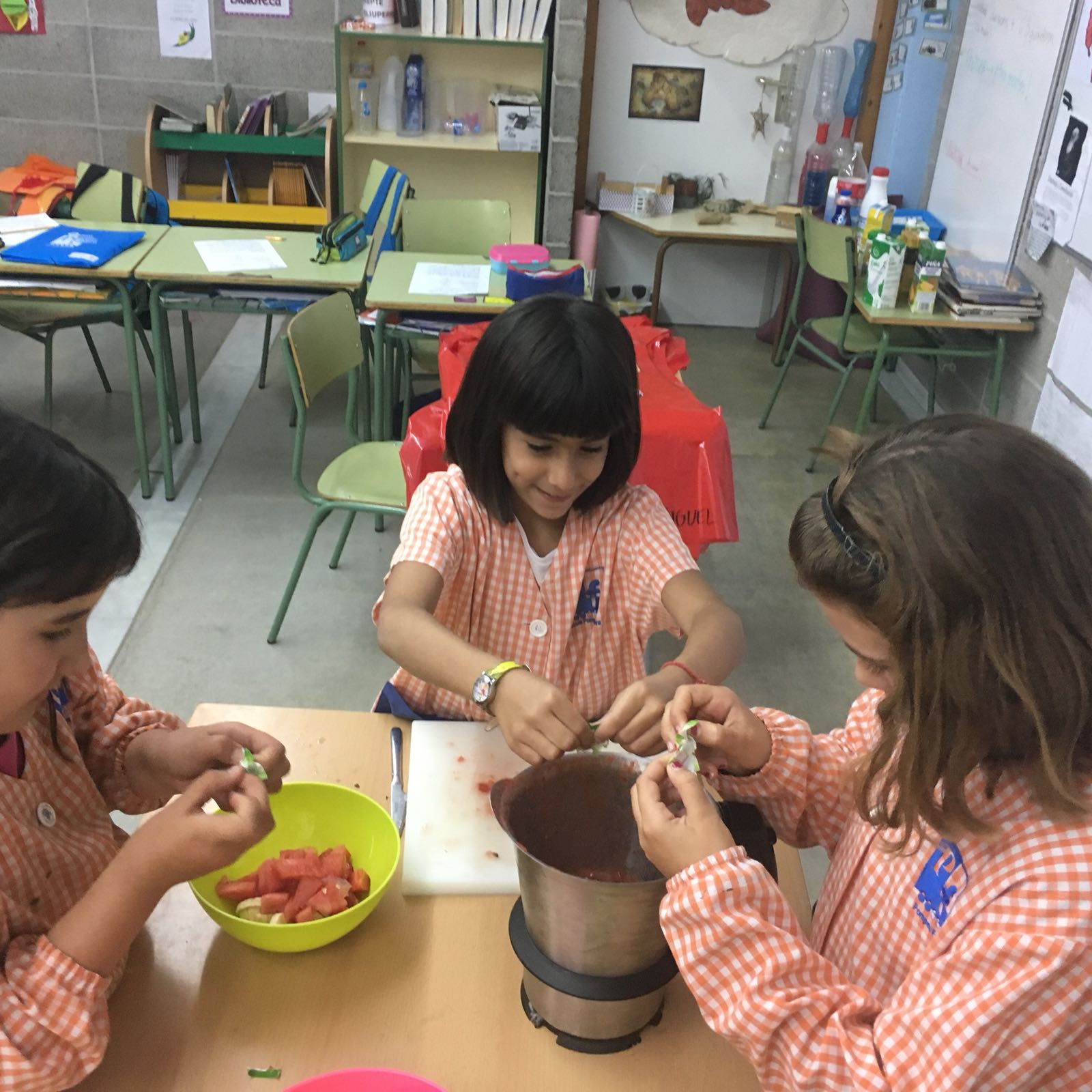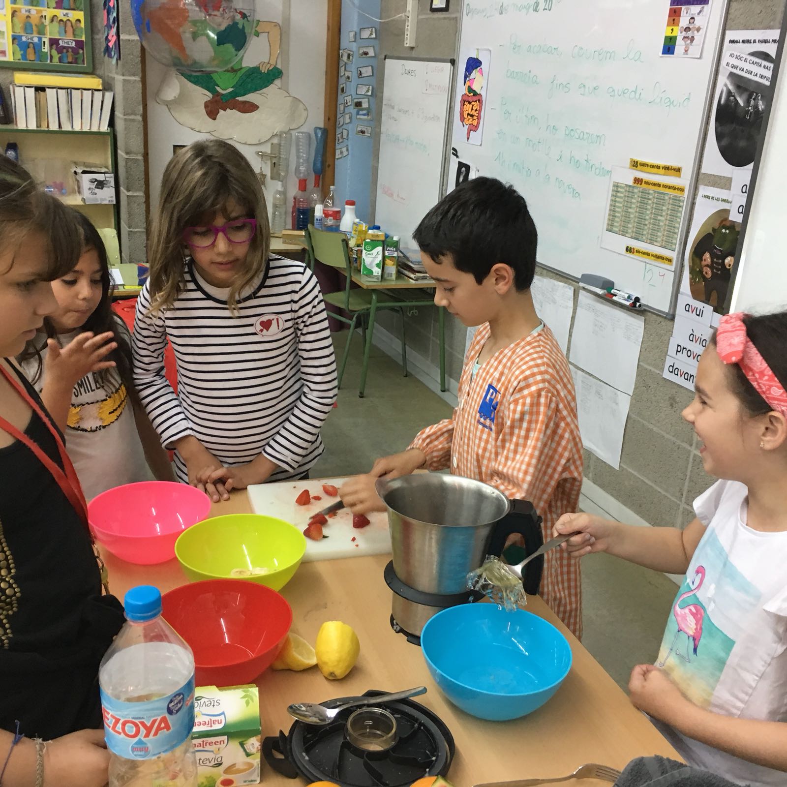 Després d’investigar, contrastar informació en equip, intercanviar idees i aprendre el funcionament de l’aparell digestiu i la importància d’una alimentació saludable, finalment, tots junts, hem fet uns dolços a partir de fruita fresca, sucre vegetal, gelatina laminada i… si en voleu saber més, no dubteu en visitar-nos a la nostra classe i us explicarem el secret de la recepta!!!