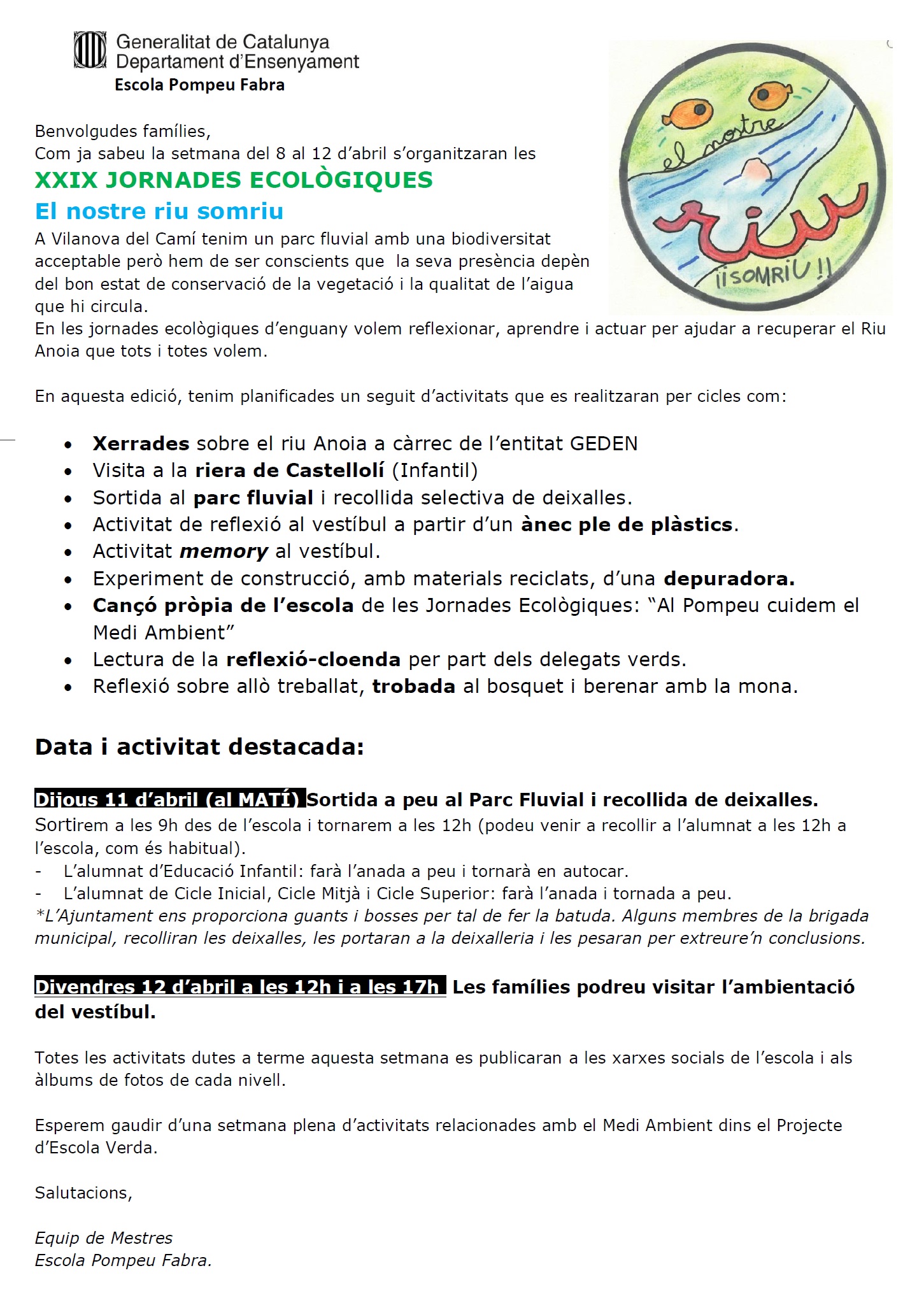 Propera setmana…XXIX Jornades Ecològiques Feu un comentari / Per admin / 2 d'abril de 2019 / General Infantil Portada Primària Logotip guanyador per les XXIX Jornades Ecològiques: AUTOR: Òscar García de 5è Volta al món