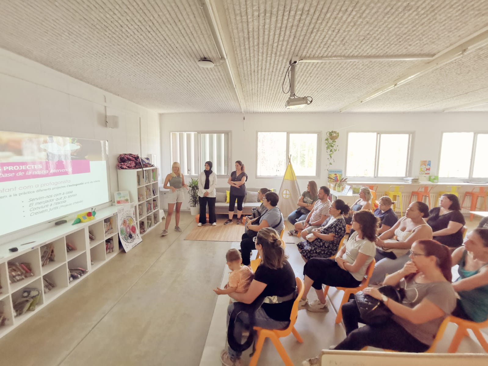 L’equip educatiu del projecte s’ha presentat, han exposat els projectes que duen a terme al servei i l’organització de l’estona de migdia, un temps de lleure molt important per a l’aprenentatge i evolució personal de cada infant.