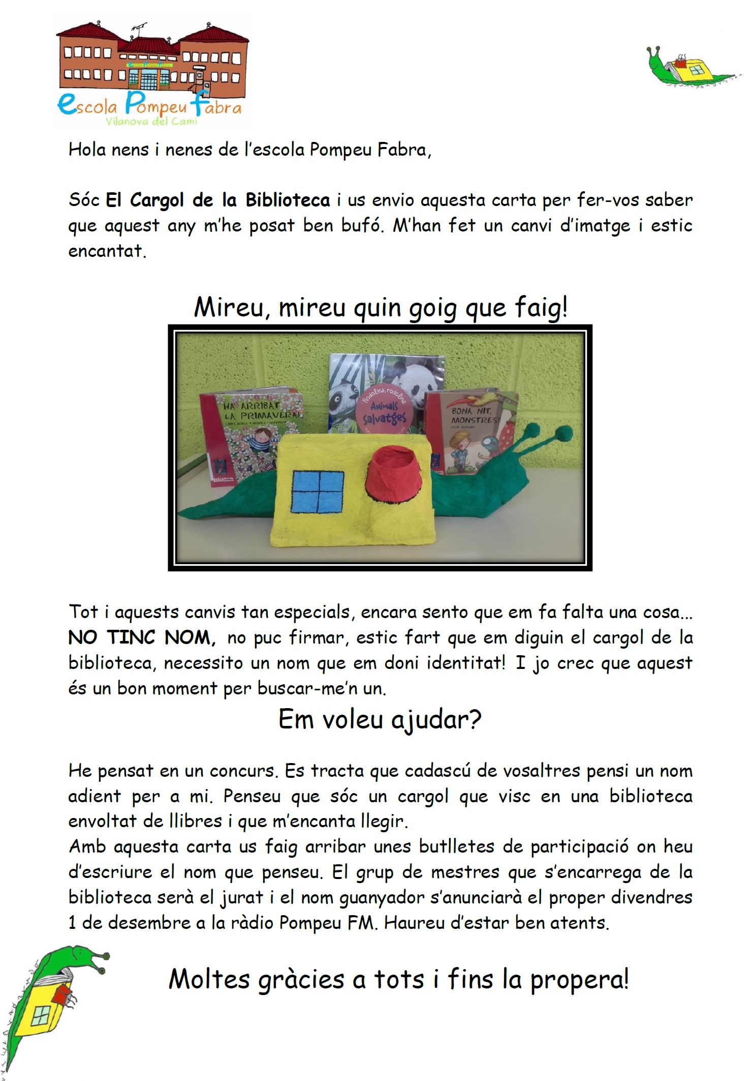 Quin nom tindrà el cargol de la Biblioteca?