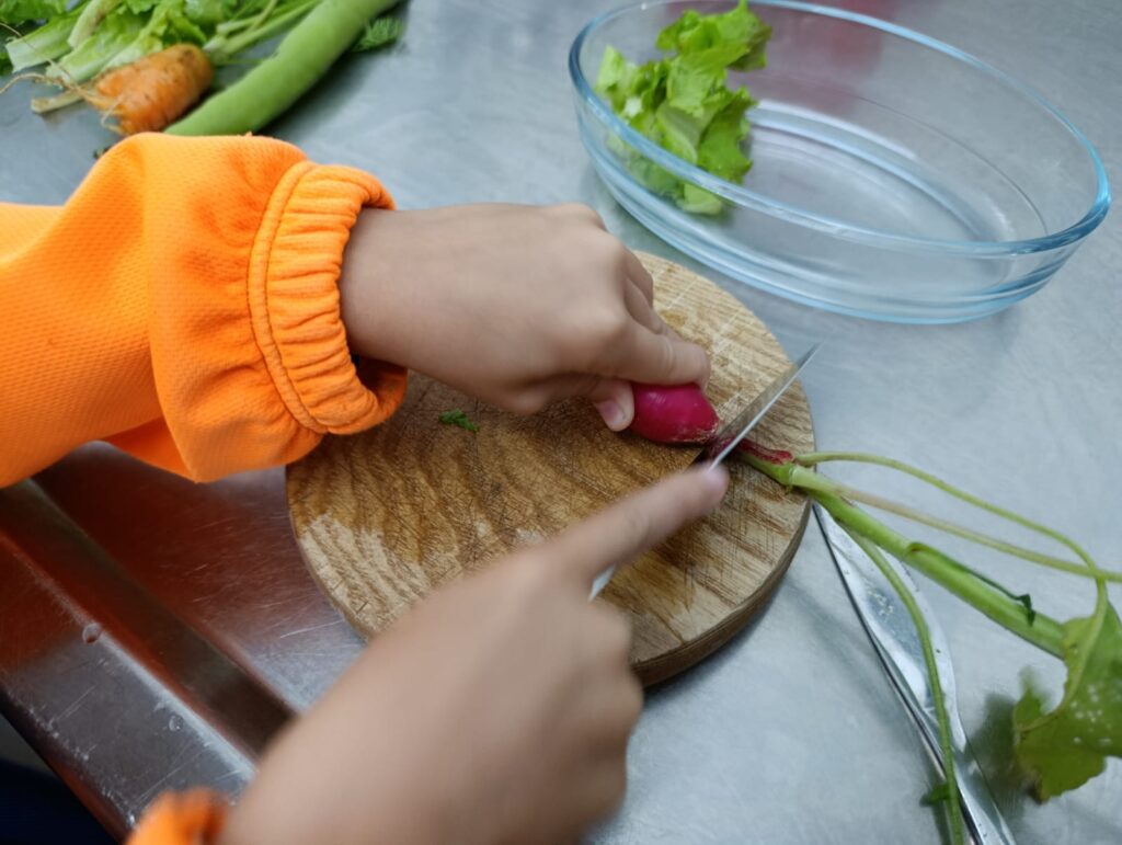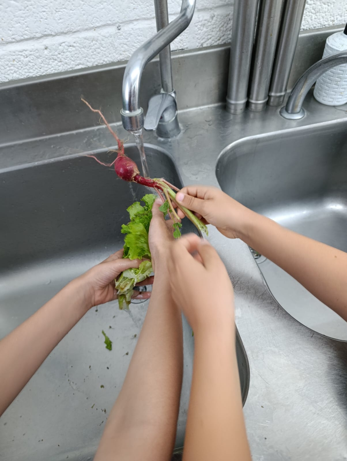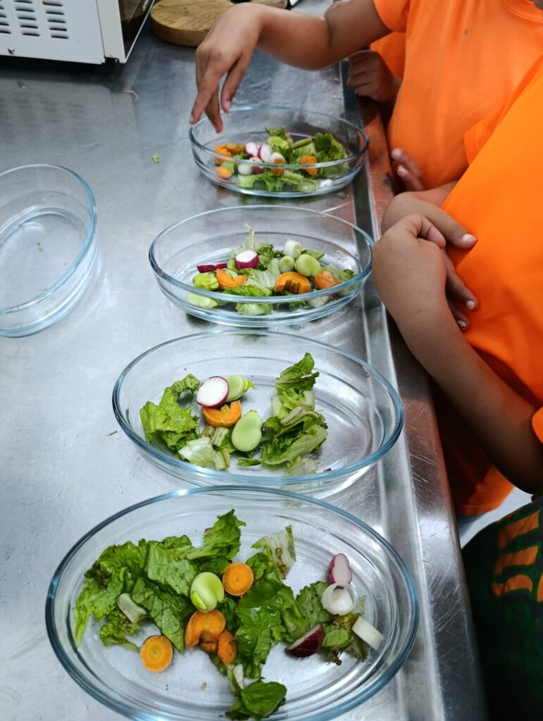 Durant tot el curs, l’alumnat de 1r ha estat cuidant l’hort de l’escola dins l’espai d’aprenentatge “Hort”. Aquesta setmana hem recollit una gran varietat de verdures i, coincidint amb el projecte de les plantes que estem treballant a l’assignatura d’anglès, hem après el nom d’aquestes hortalisses. Finalment, hem preparat entre tots una amanida ben gustosa que hem pogut compartir i degustar plegats.