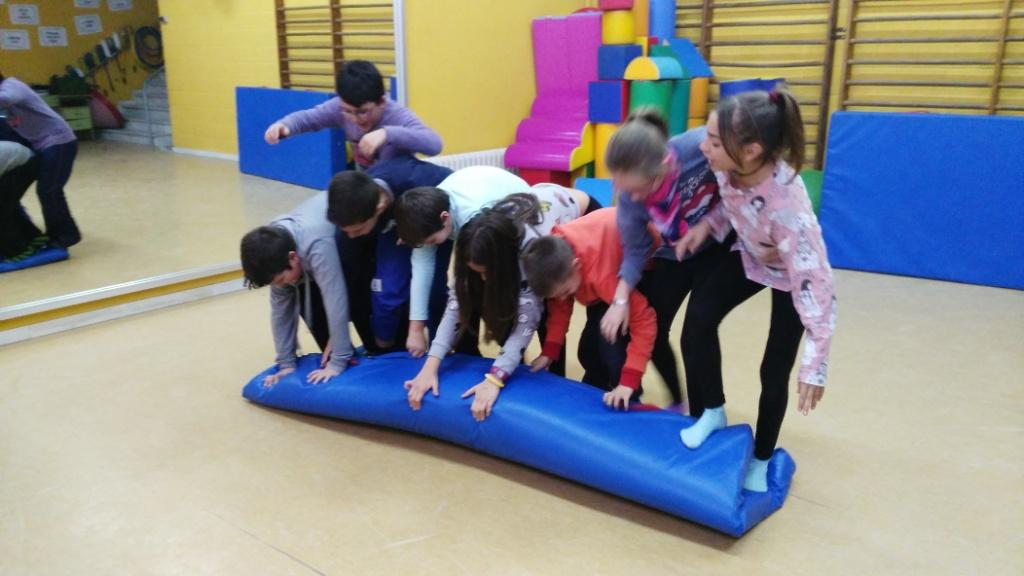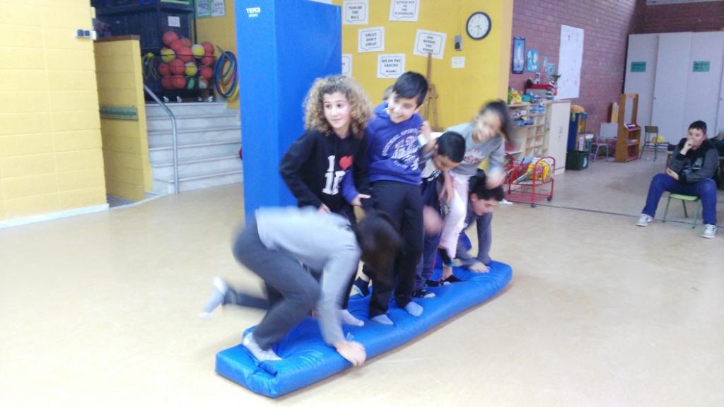 Els alumnes de cicle superior estem treballant els reptes cooperatius a la classe d’educació física.