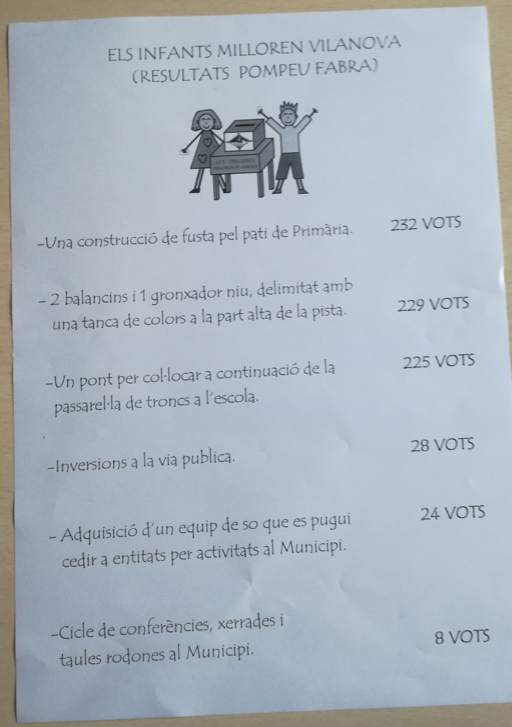 Resultats del procés participatiu a l’escola Feu un comentari / Per admin / 22 de juny de 2017 / General Infantil Portada Primària L’Ajuntament ens ha fet arribar els resultats de les votacions del procés participatiu per a les millores a l’escola: