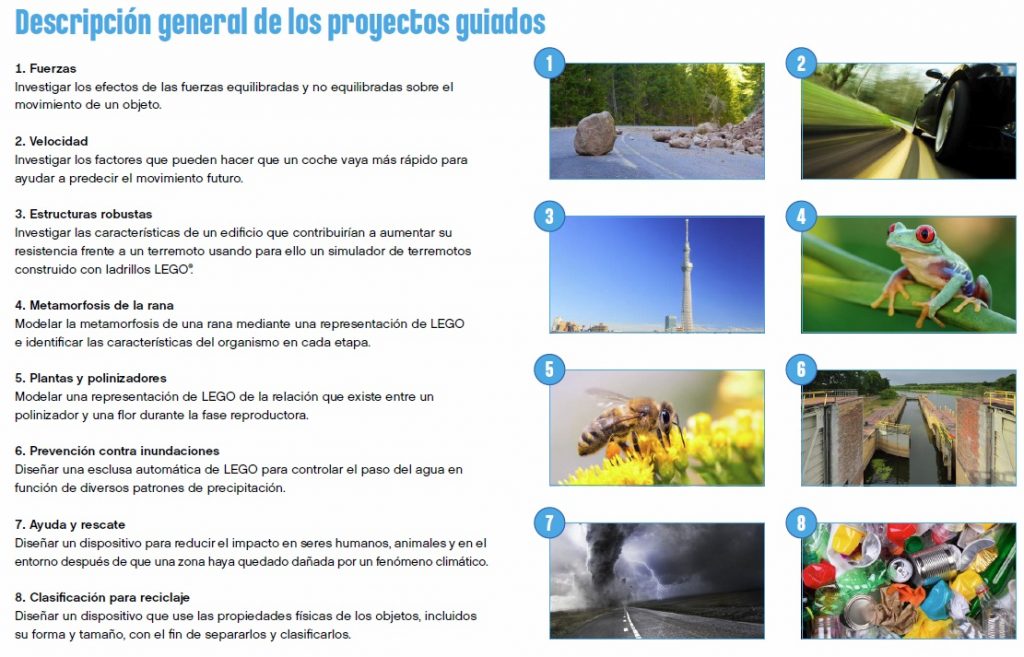 Cadascun dels projectes de WeDO 2.0 es defineixen en tres fases: la fase d’explorar (l’alumnat connecta amb una pregunta científica, estableix la línia d’investigació i considera les possibles solucions), la fase de crear (on l’alumnat construeix, programa i modifica el model WeDo 2.0) i la fase de compartir (l’alumnat presenta i explica les seves solucions al robot creat amb la documentació que ha elaborat al llarg del projecte). Tot aquest procés està guiat per vídeos i passos presentats pel Max i la Mia (personatges LEGO) que faciliten el treball de l’alumnat al llarg del projecte.