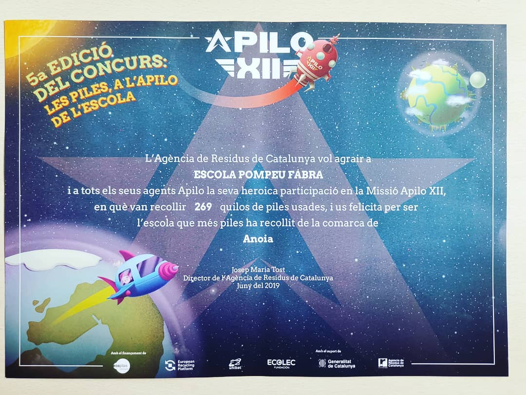 La Generalitat de Catalunya i l’Agencia de Residus de Catalunya han engegat, un curs més, la Missió Apilo XII a la qual la nostra escola s’hi va adherir per tercer curs consecutiu.