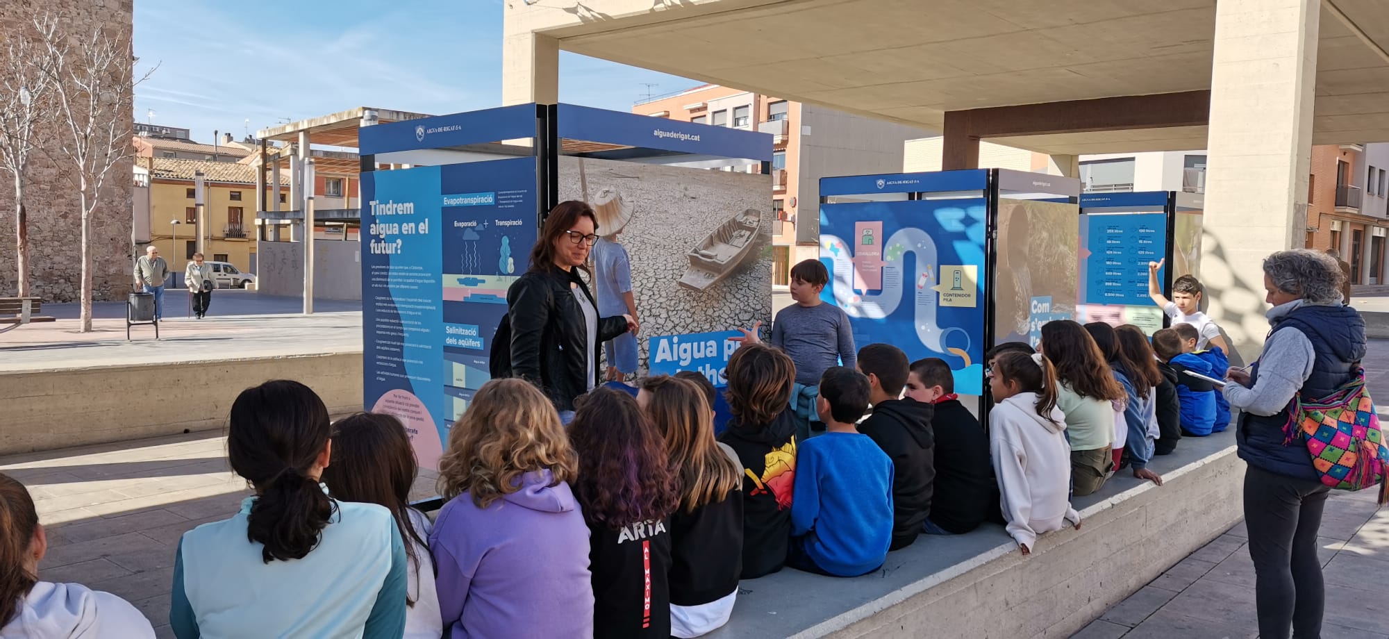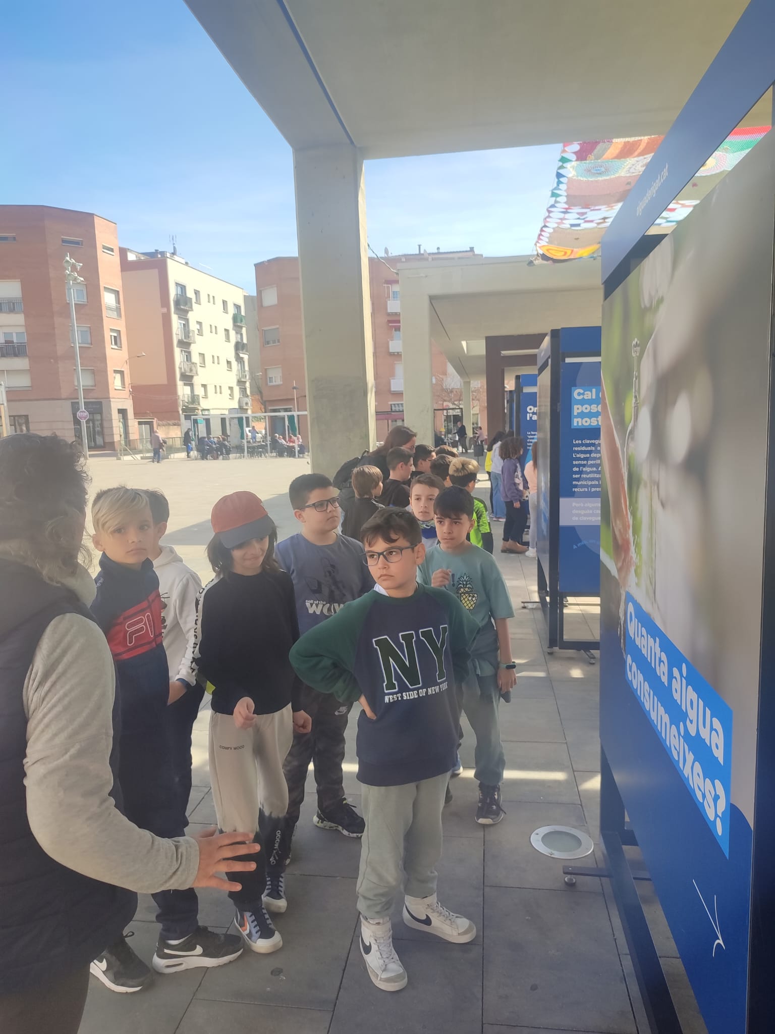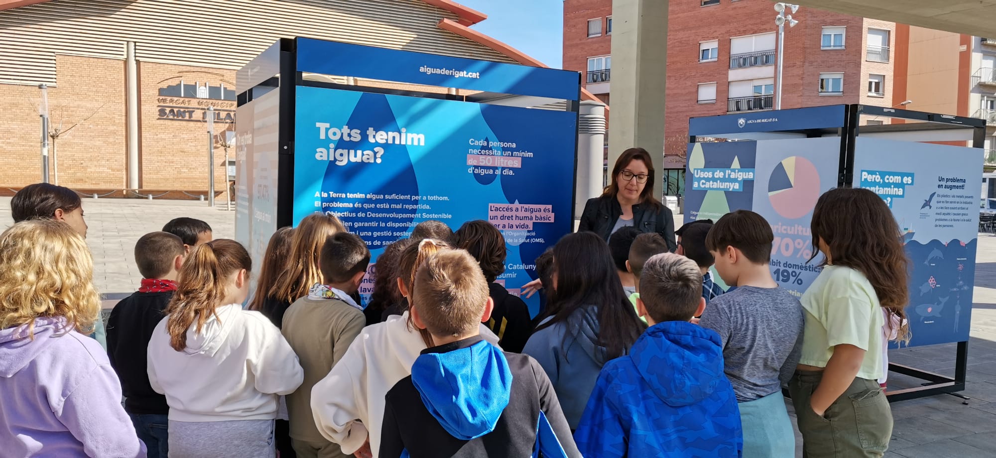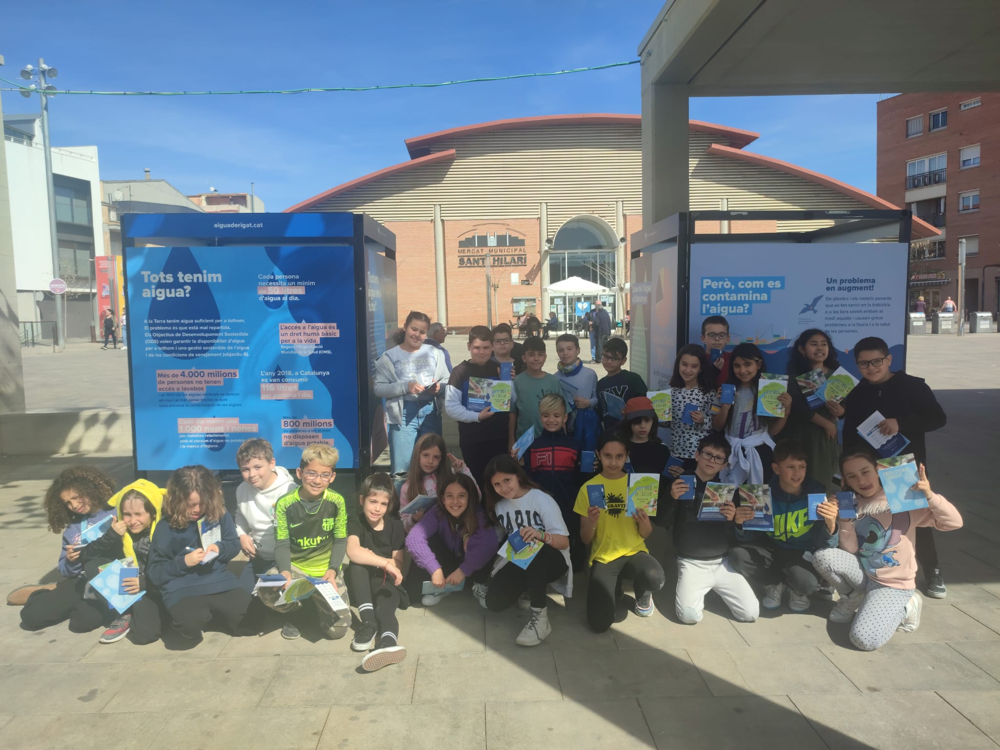 El dia 20 de març, les nenes i els nens de 4t de Primària han anat a la plaça del Mercat de Vilanova del Camí per fer una visita guiada a l’exposició de l’aigua que organitza Aigua de Rigat SA amb la col·laboració de l’Ajuntament de Vilanova.