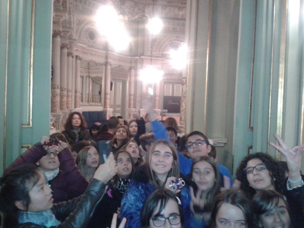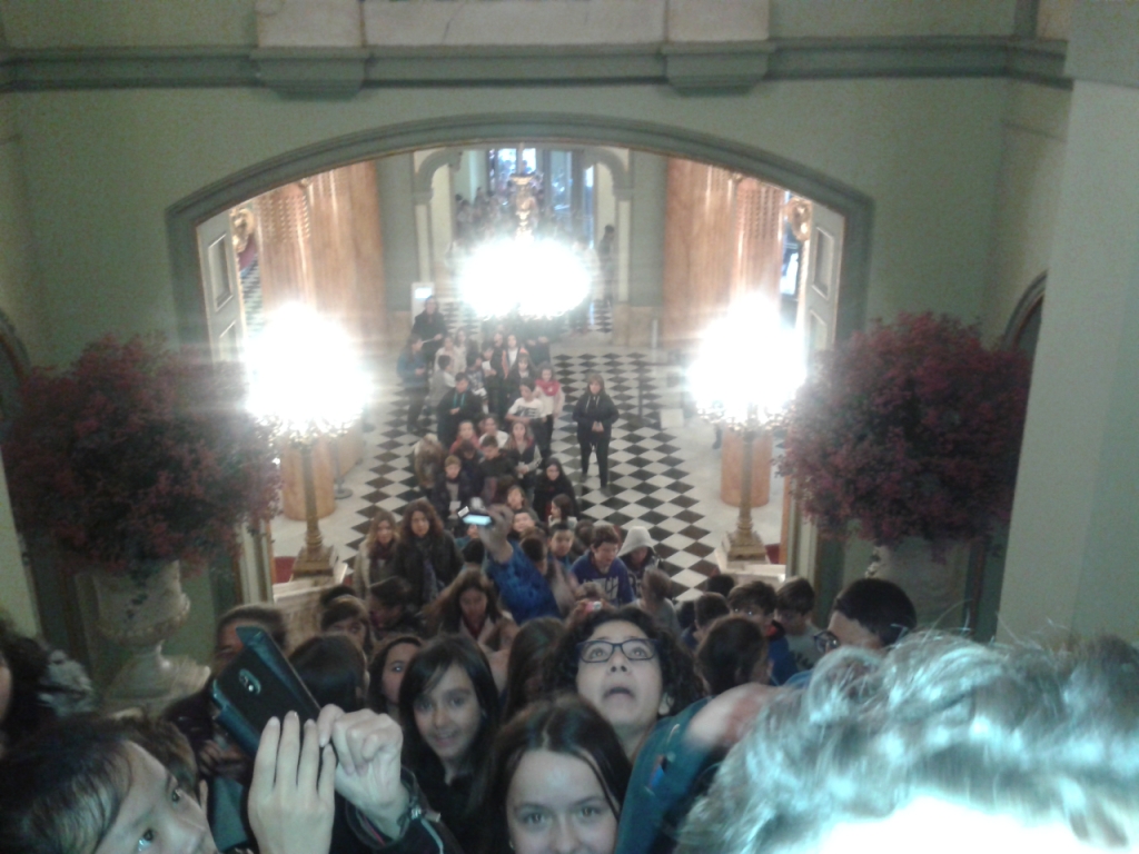 Un cop al Liceu, ens faltaven ulls per observar l’entrada, la catifa de l’escalinata per on ascendíem al primer pis, els llums del sostre, la gran escultura de la música… i tota la grandiositat de l’espai.