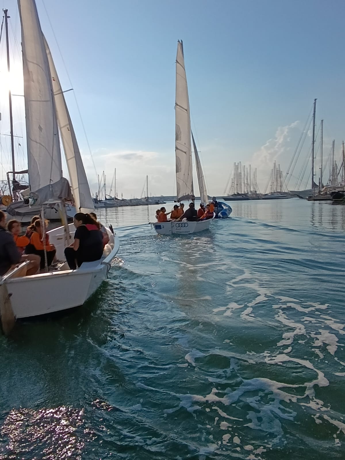 Després, amb l’ajuda dels monitors, vam aprendre com funciona una embarcació de vela. Ens van ensenyar a orientar-nos amb el vent, a moure les veles i a treballar en equip per fer avançar el vaixell. També vam tenir l’oportunitat de pujar a les embarcacions i navegar pel mar.