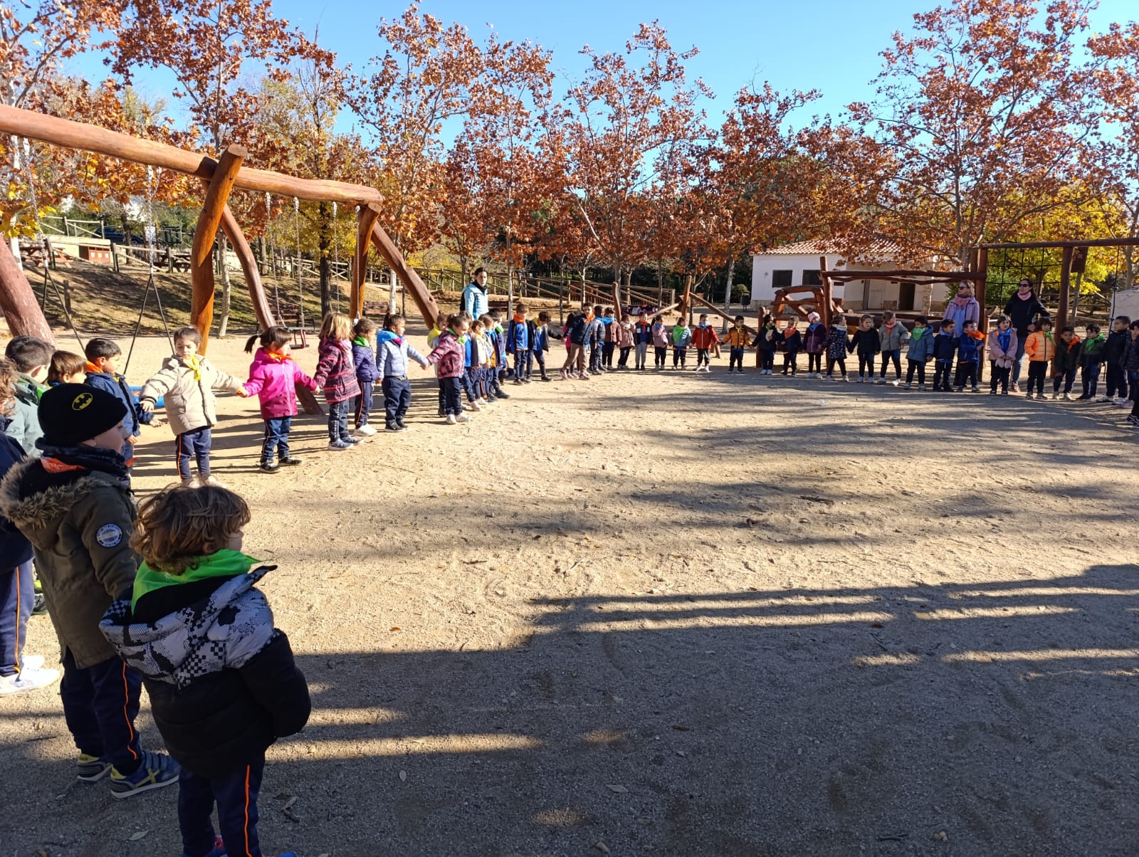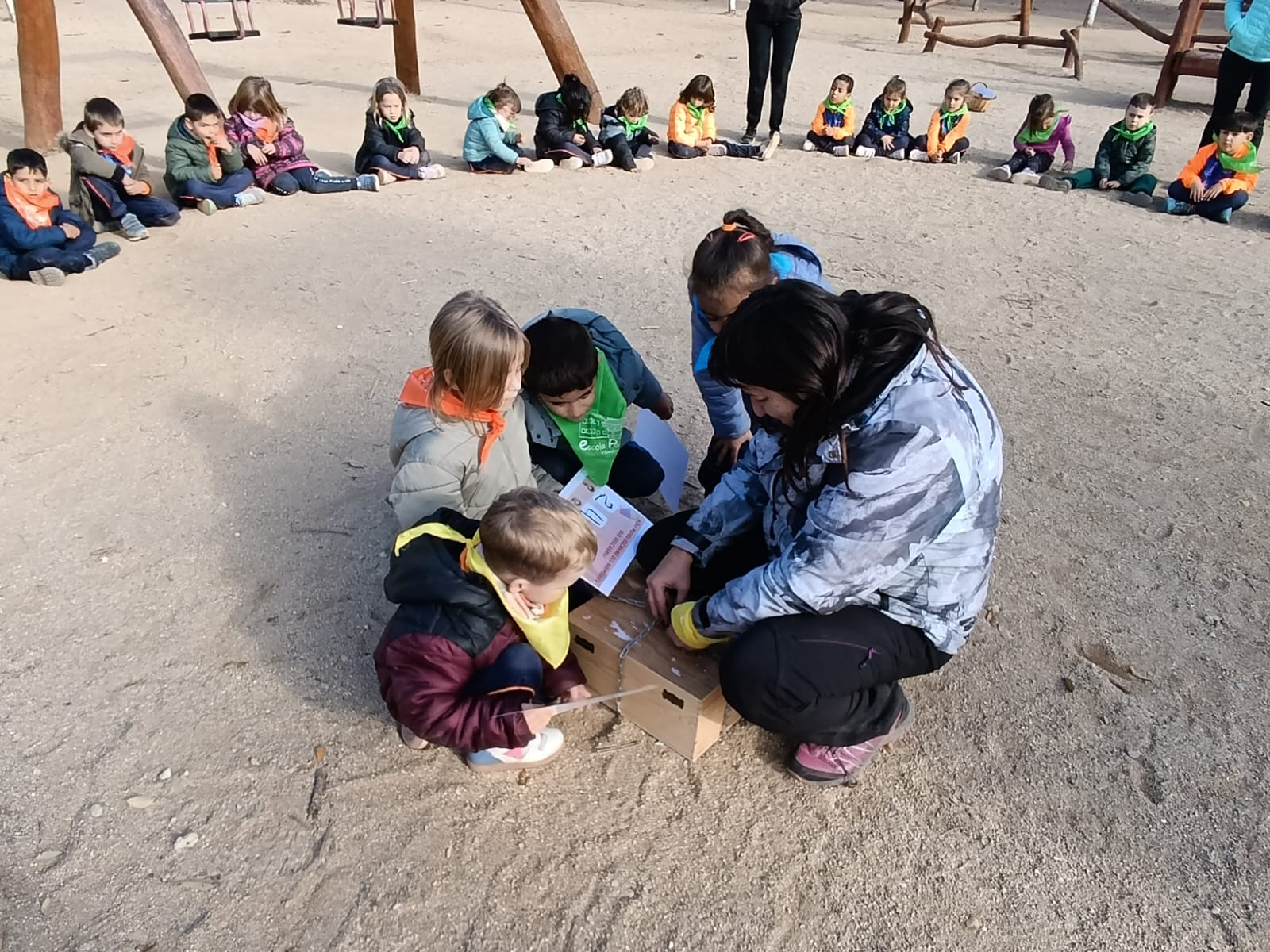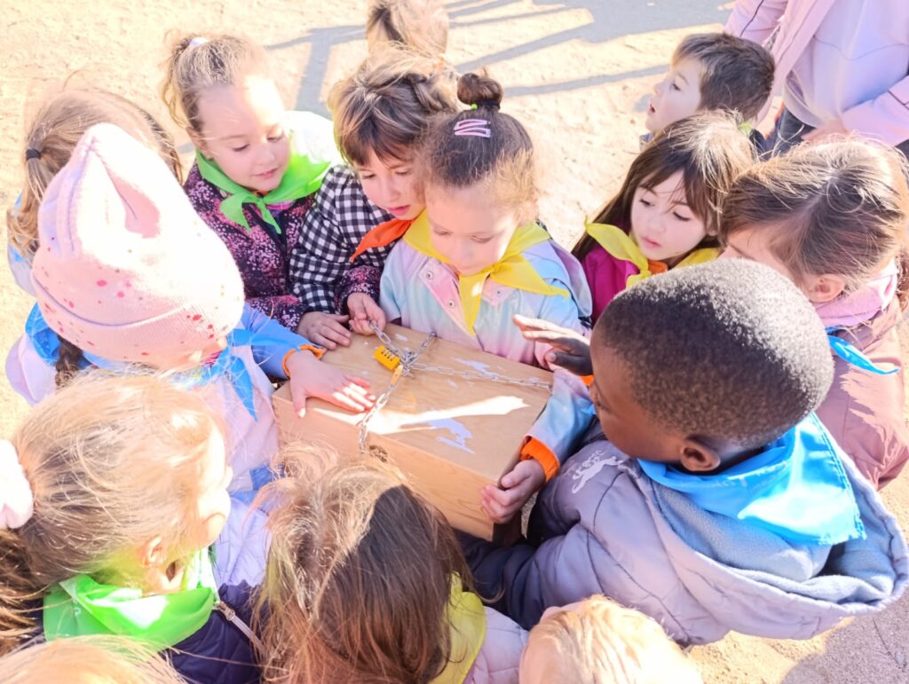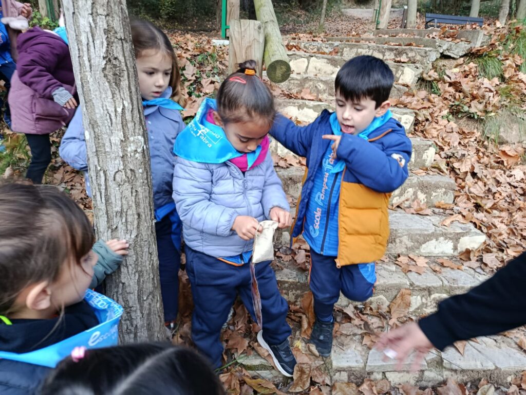El passat dimarts 25 de novembre, els nens i les nenes d’I4 i d’I5 vam anar d’excursió al Parc de Can Cases a Martorell. Uns dies abans de la sortida, la fada del bosc Lea, ens va enviar a l’escola una carta, on demanava ajuda a tots els infants d’aquestes classes perquè els seus germans havien guardat un conte, que ens volia regalar, en un cofre i ho havien tancat amb un cadenat. Un cop allà vam ajudar a la Lea, fent un joc de pistes. Havíem d’aconseguir trobar els quatre nombres que obrien el cadenat del cofre. A dins hi havia un regal… un conte molt divertit “Dos esquirols i una pinya”. Després vam dinar plegats i vam jugar a les construccions del parc. Va ser un dia rodó!