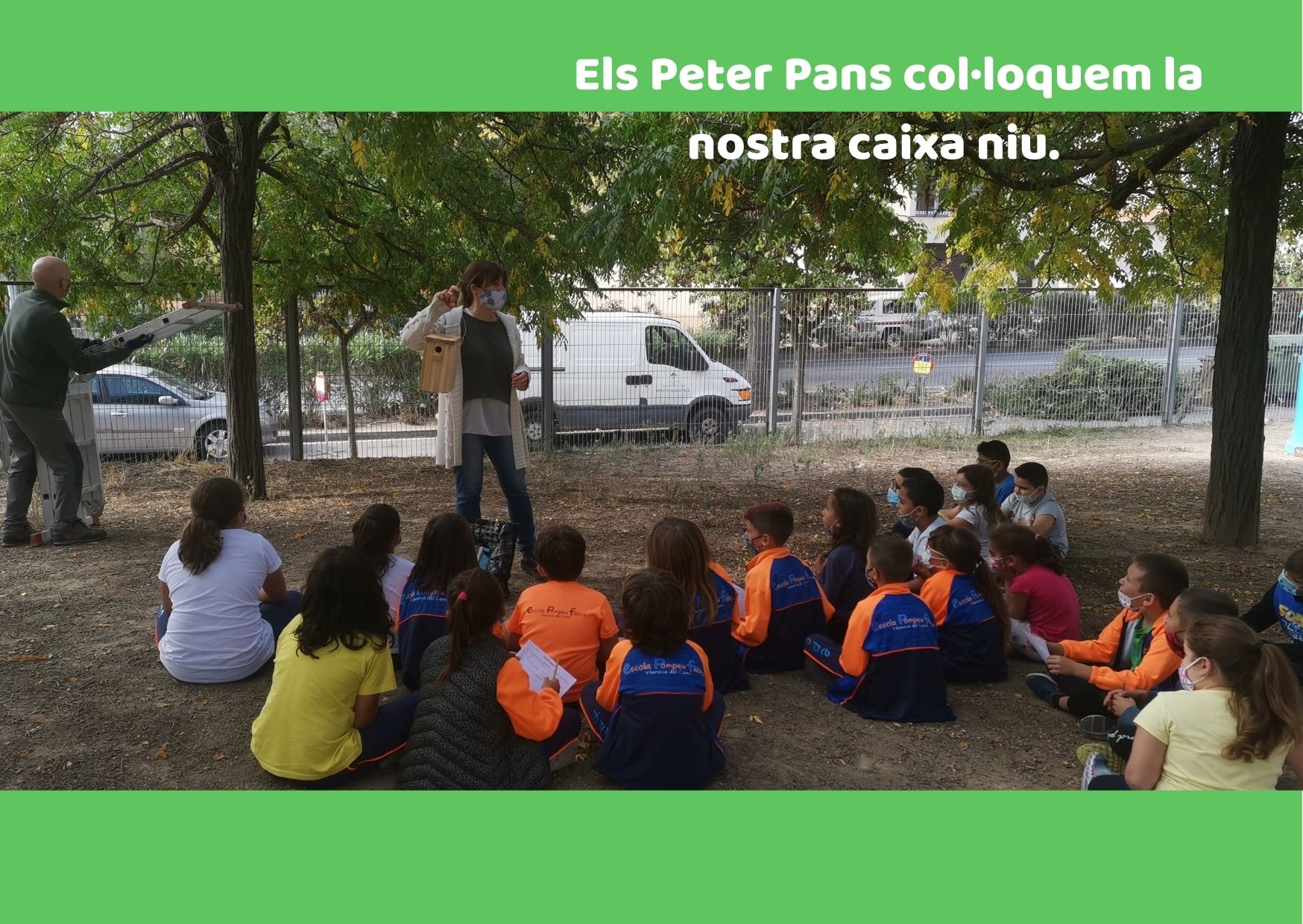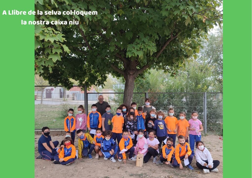 Havent parlat del tema i après totes aquestes coses, els nens i les nenes de tercer han col·locat la seva pròpia caixa niu a un dels arbres de la nostra escola (a la part del bosquet). A partir d’ara és quan comença un procés d’allò més interessant, ja que aquests hauran d’observar l’evolució de la caixa niu i fer-ne un seguiment que aniran anotant a la seva fitxa tècnica.