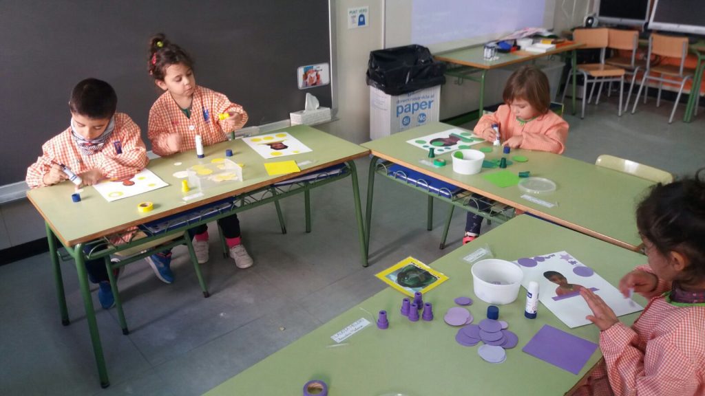 L’alumnat de P3, P4 i P5, organitzats en grups barrejats de totes les aules, gaudeixen de tallers rotatius relacionats amb diferents temàtiques i aprenentatges propis de l’etapa d’infantil. Psicomotricitat i relaxació amb l’Emo, teatre amb “La Bruixa coloraina”, scrapbooking (paper i color), pintura amb textures… i molts d’altres per aprendre i gaudir amb els companys/es de tots els cursos d’infantil.